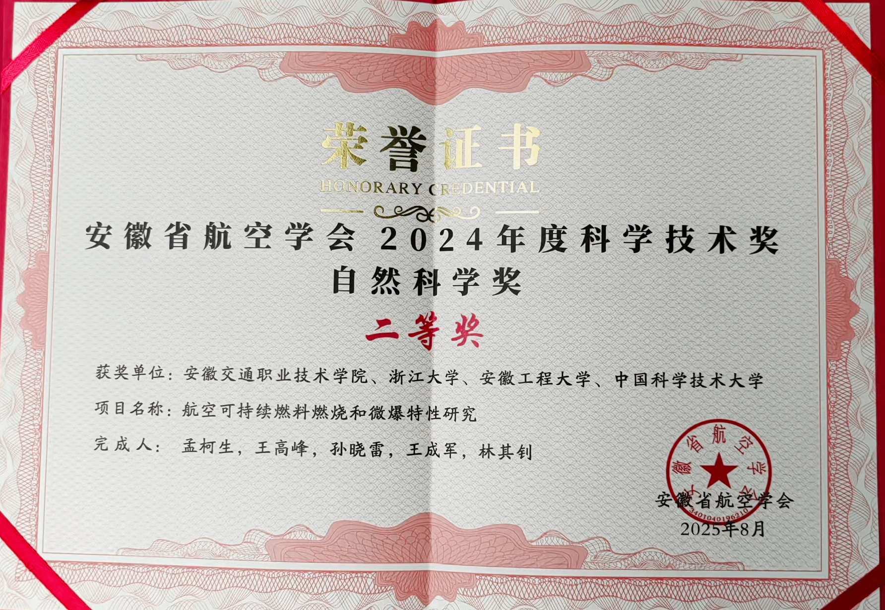 8月23日,安徽省航空學(xué)會2024年度科學(xué)技術(shù)獎頒獎儀式在合肥工業(yè)大學(xué)舉行。由我校牽頭,聯(lián)合浙江大學(xué)、安徽工程大學(xué)、中國科學(xué)技術(shù)大學(xué)共同申報的科研項目《航空可持續(xù)燃料燃燒和微爆特性研究》,榮獲自然科學(xué)獎二等獎。