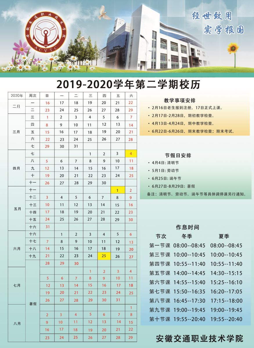 2019-2020學年第二學期校歷