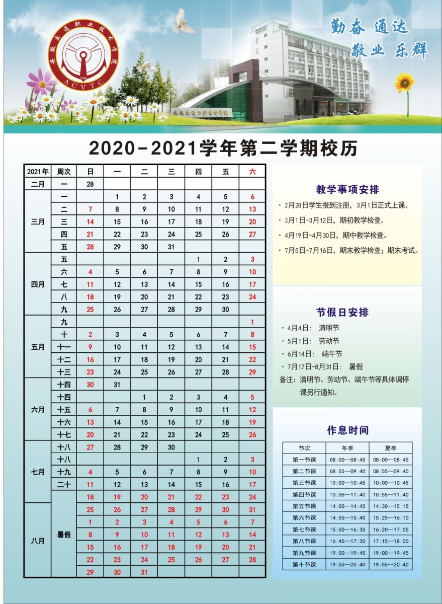2020-2021學(xué)年第二學(xué)期校歷