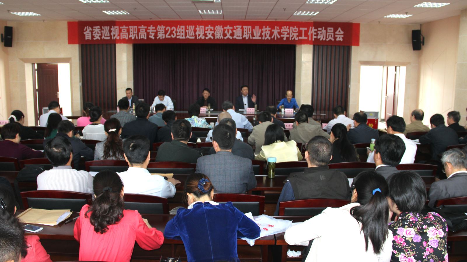 根據省委統一部署,省委巡視高職高專第二十三組于5月10日進駐我院開展巡視工作。5月11日上午,召開巡視學院工作動員會議,省委巡視高職高專第二十三組組長閆如政作動員講話,省交通運輸廳副廳長丁慶領出席會議并講話,學院黨委書記孫順利作表態發言。巡視組副組長鄭赤鵬、李皖生及巡視組全體成員,學院領導班子成員、院機關各處室正副職、各系領導班子成員、學院產業單位主要負責人、在職黨員副高以上職稱同志以及2013年以來退下來的副處級以上干部出席會議。