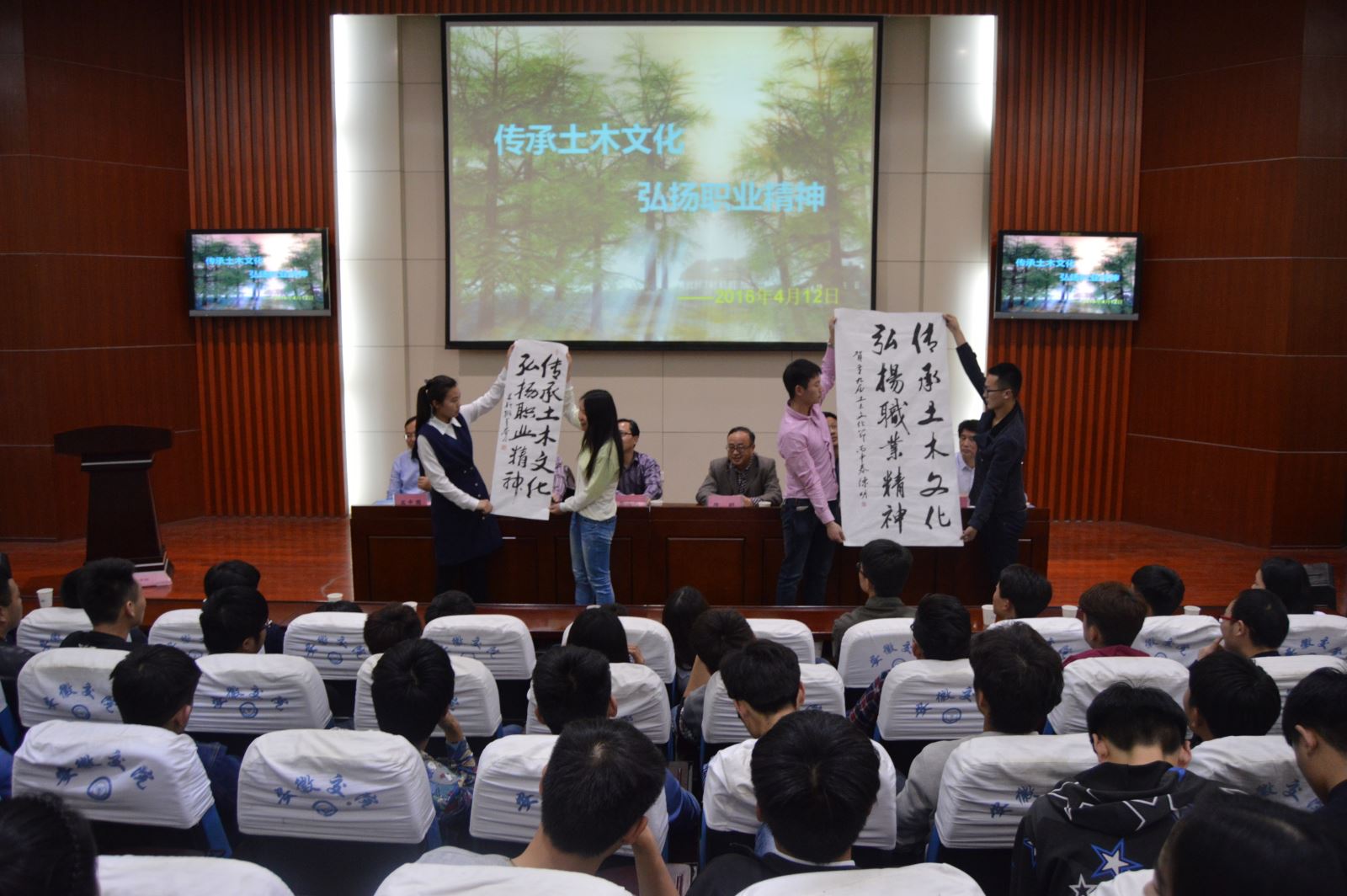 4月12日晚7時,土木工程系第九屆“土木文化節(jié)”開幕式暨第八屆“土木文化節(jié)”頒獎典禮在北區(qū)多功能報告廳舉行,院黨委副書記(主持黨委工作)孫順利,院黨委副書記、紀委書記陳明為開幕式題詞。陳明出席開幕式,宣布“傳承土木文化,弘揚職業(yè)精神”第九屆土木文化節(jié)開幕。