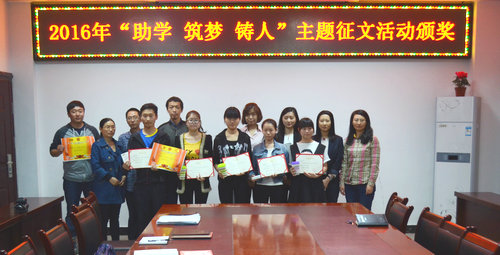 4月22日, 由院學(xué)生資助中心主辦的2016年“助學(xué)?筑夢(mèng)?鑄人”主題征文活動(dòng)頒獎(jiǎng)儀式在學(xué)生處二樓會(huì)議室舉行。各系學(xué)生資助工作負(fù)責(zé)老師及獲獎(jiǎng)學(xué)生代表參加活動(dòng)。
