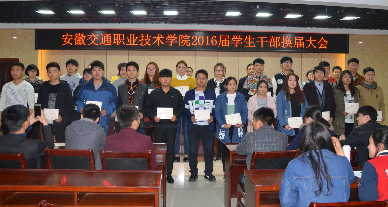 3月23日下午, 我院2016屆院學生組織換屆大會在學生活動中心召開,院黨委副書記、紀委書記陳明,學生處、團委負責人、院學生組織2015屆、2016屆干部等參加會議。