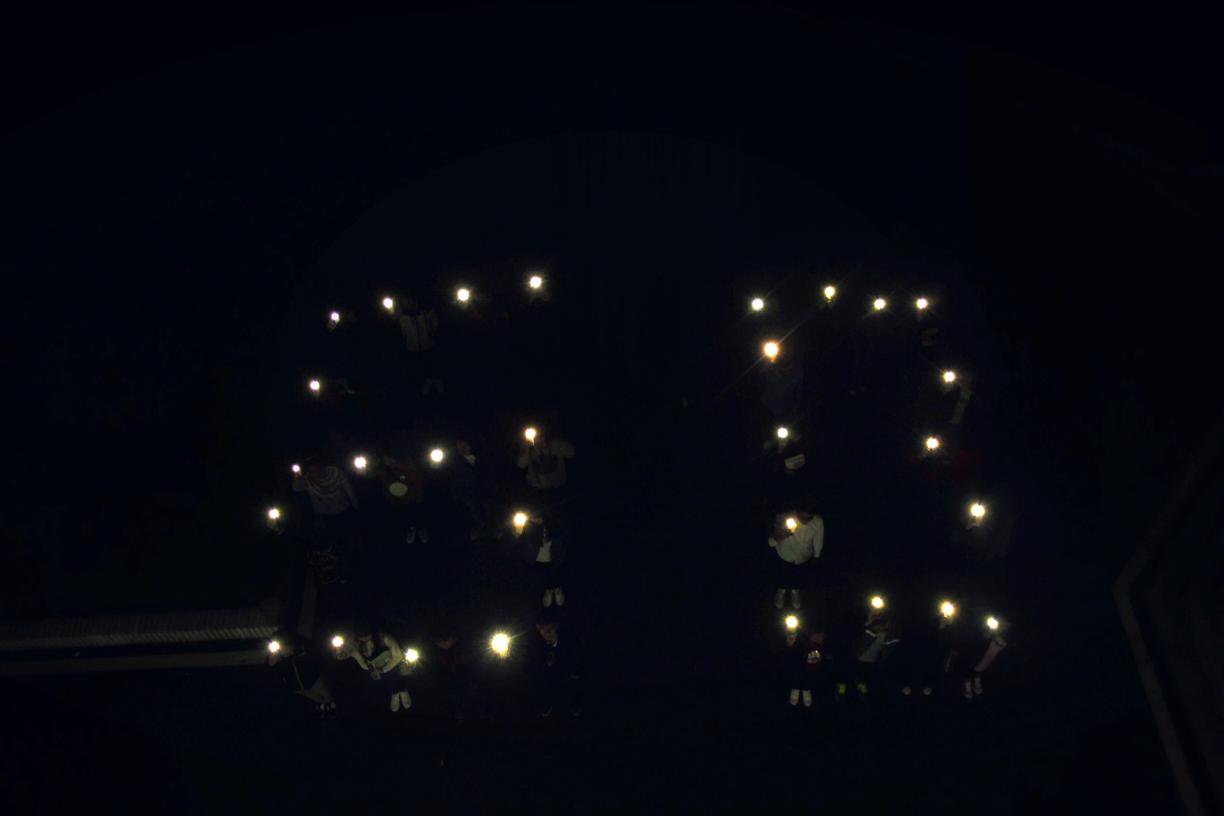 同學(xué)們用手機閃光燈擺出“60”字樣,象征著與地球同呼吸、共命運。在操場上他們展開了一場圍繞“地球一小時”活動的大討論。大家從盼望藍天入手,討論在日常生活中衣食住行樂各方面踐行可持續(xù)的綠色生活和消費方式,鼓勵大家行動起來,用每個人的力量,為“藍”生活做出貢獻。