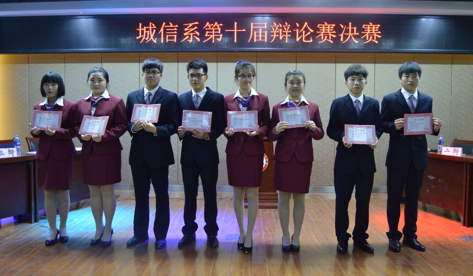 八位選手唇槍舌戰,你來我往,慷慨陳詞 巔峰對決,表現出良好的辯論功底和水平,將從中選出4位選手,代表城信系決戰學院今年的“通達杯”大專辯論賽。系團總支書記王姁老師為八位同學頒發了系“優秀辯手”獎狀。(記者團 楊松 薛宜揚)