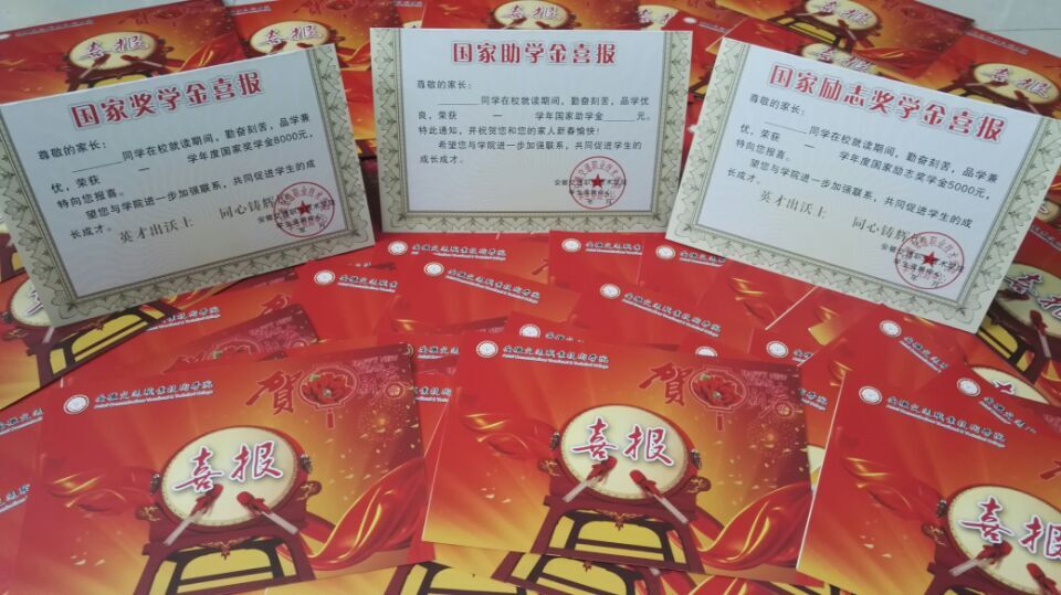 為增強優秀學子自身榮譽感、鼓勵在校生刻苦勤奮學習,同時幫助家長全面了解其子女在校學習動態,新年伊始,院學生資助中心組織各系向獲得2014—2015學年國家獎學金、國家勵志獎學金的208名學生以及獲得2015-2016學年國家助學金的1568名學生家中寄送了喜報。