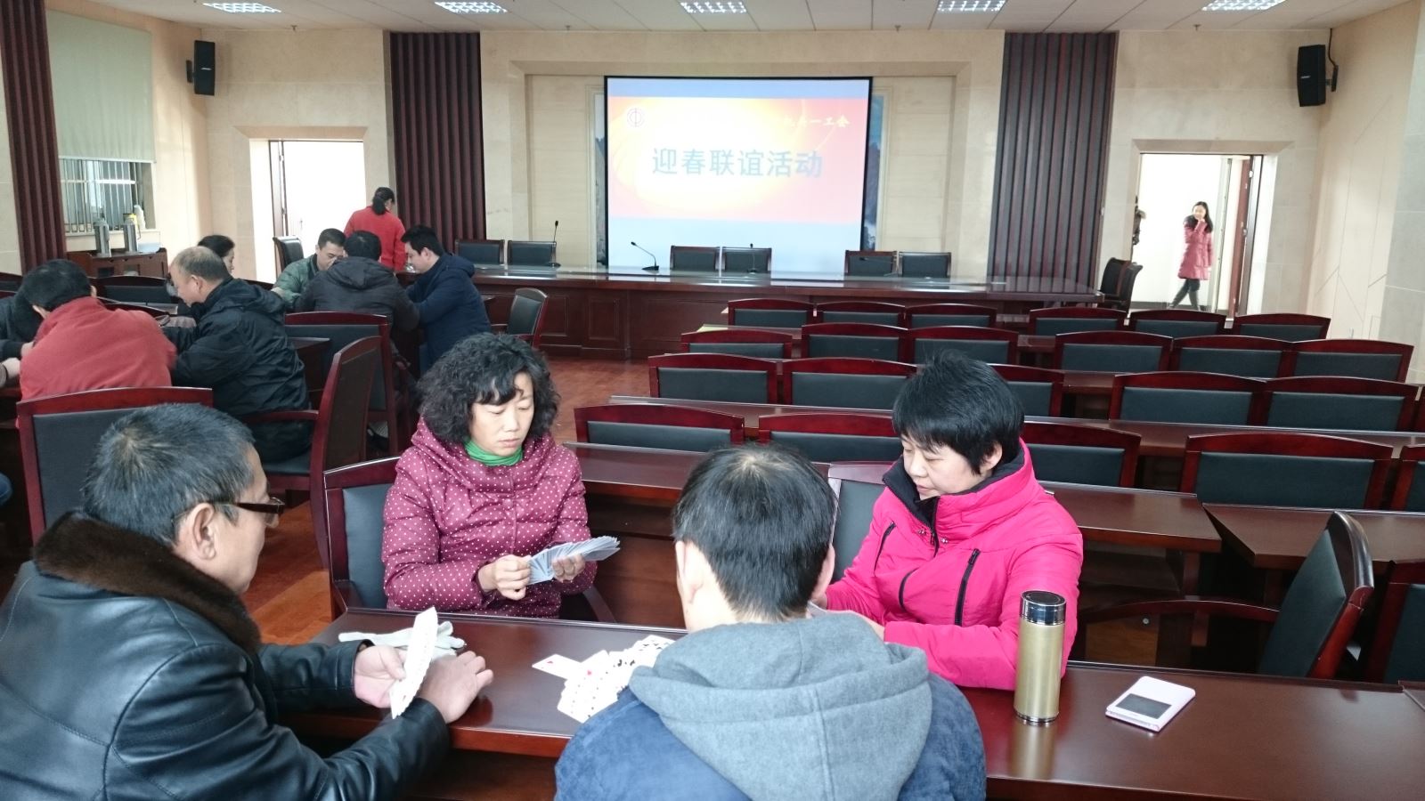 1月26日下午,學院會議室窗外溫暖的陽光和著室內“春節序曲”的背景音樂,洋溢著一派歡樂祥和的節日氛圍。機關一工會的會員暫時放下手頭工作,聚集在一起聯誼迎春。撲克牌比賽分組抽簽大家都想“強強聯手”,比賽中認真理論“當仁不讓”;吸引很多會員參加的擲圈游戲更是“短平快”的獲獎機會,大家紛紛一試身手。碰到“高手”投出的圈圈飛過“牙膏”準確套上“洗手液”“大獎”時,人群中頓時傳出一陣陣歡笑聲……