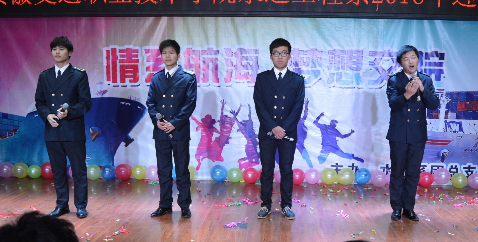 由管理系和水運系同學共同演出的話劇《船長與實習生》,演員們飽含深情的表演打動了在座的每一位同學;雙簧《逗你玩兒》用詼諧的動作和幽默的語言逗的現場觀眾捧腹大笑;“我祈禱擁有一顆透明的心靈和會流淚的眼睛,給我再去相信的勇氣,越過謊言去擁抱你……”、“我和我最后的倔強,握緊雙手絕對不放,下一刻是不是天堂……”精彩的歌曲串燒,用不同風格的歌曲激起了同學們的熱情,使現場氛圍達到了高潮。女生集體舞《crazy》、對口相聲《傳統與現代》等節目不斷得到觀眾的掌聲。最后,晚會隨著詩朗誦《航海之心》完美落下帷幕。(記者團 文/劉靜 圖/劉海兵 張飄)
