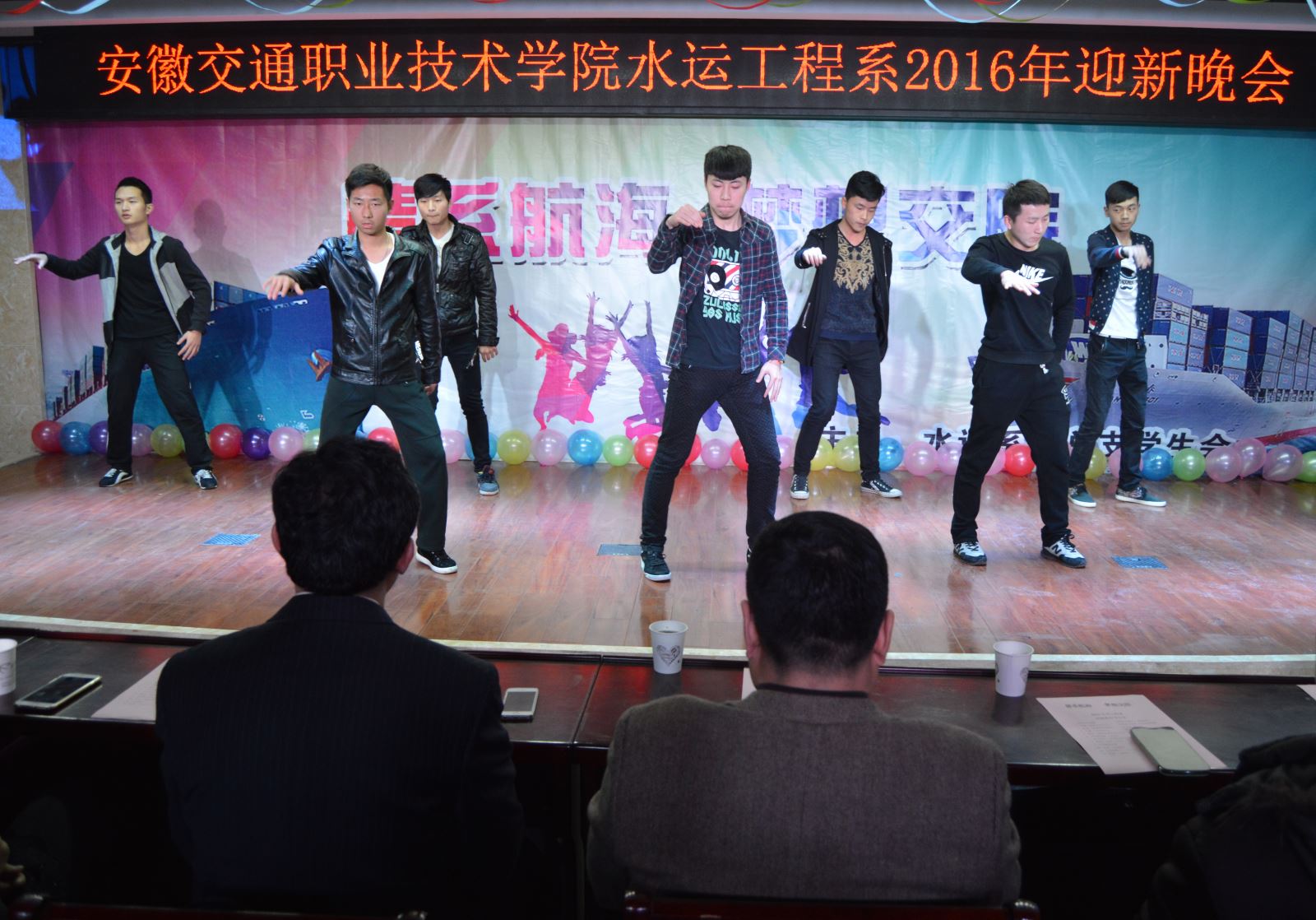 12月24日晚,水運工程系2015級迎新晚會在學生活動中心二樓拉開帷幕.隨著安街社充滿激情的開場舞《poping》晚會正式拉開帷幕,水運系主任雷長森發表熱情洋溢的歡迎詞,在對新生自開學以來的良好表現做出肯定的同時,對水運系本學期取得了成就一一作了介紹,使新生更加明確自己的奮斗目標,堅定了未來的步伐。