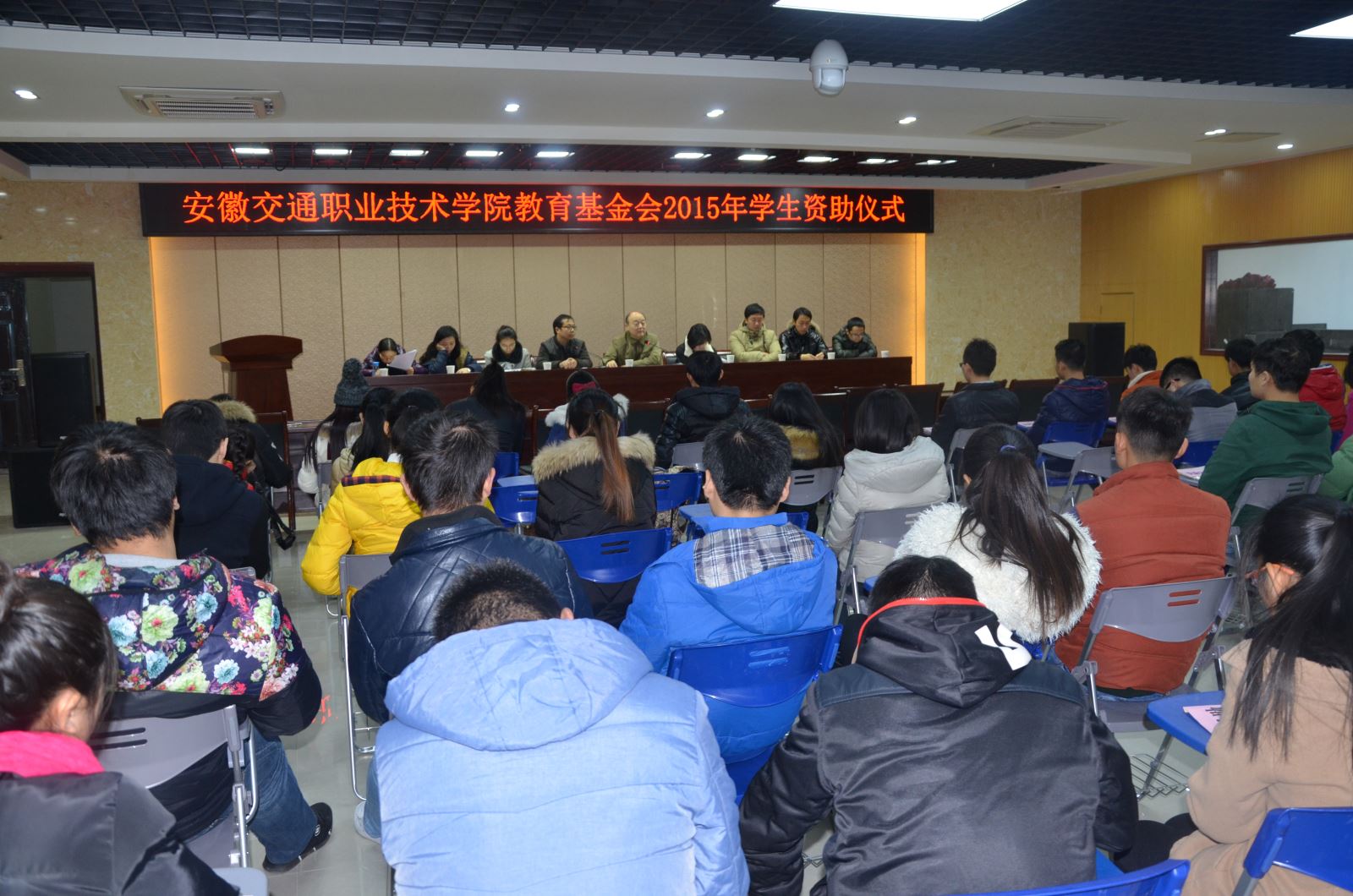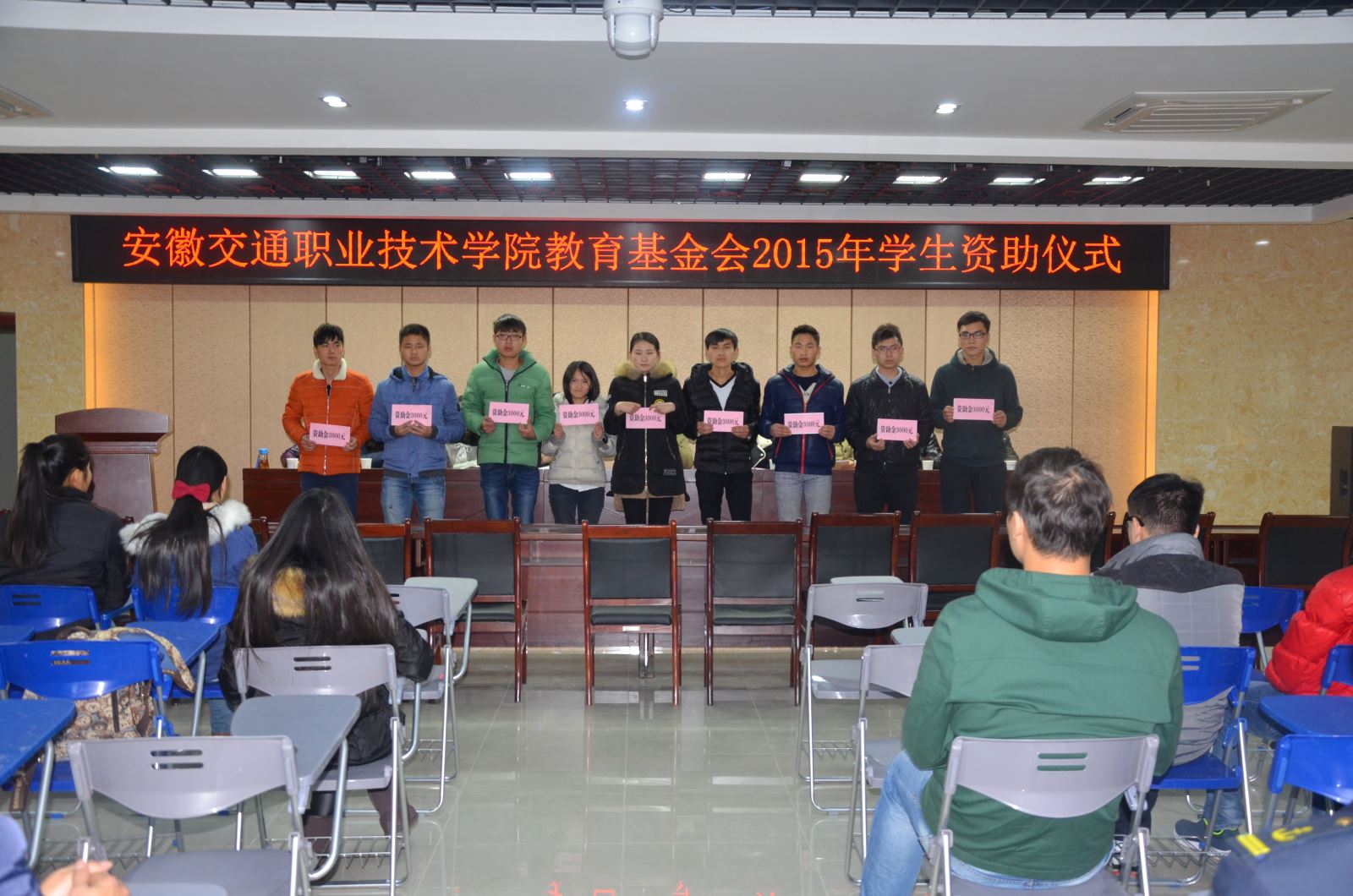 12月16日下午,學院教育基金會第三期家庭經濟困難學生資助儀式在學生活動中心報告廳舉行,基金會理事長趙奮、學院從事資助工作的老師和第三期受助的59名同學參加了發放儀式,儀式由學生處副處長、團委副書記昌希燦主持。本期重點資助了失去雙親或單親家庭中的特困學生,共計發放資助款項95200元。