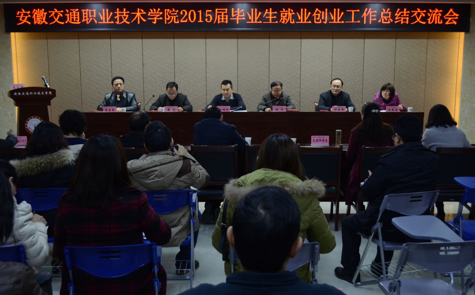 12月23日下午,學院2015屆畢業生就業創業工作總結交流會在學生活動中心召開。院院黨委副書記(主持黨委工作)孫順利、院黨委副書記、紀委書記陳明、相關處室負責人、各系(部)黨政負責人、就業工作人員、2015屆、2016屆畢業班輔導員、2015年熱心就業先進個人參加會議,副院長李亮主持會議。