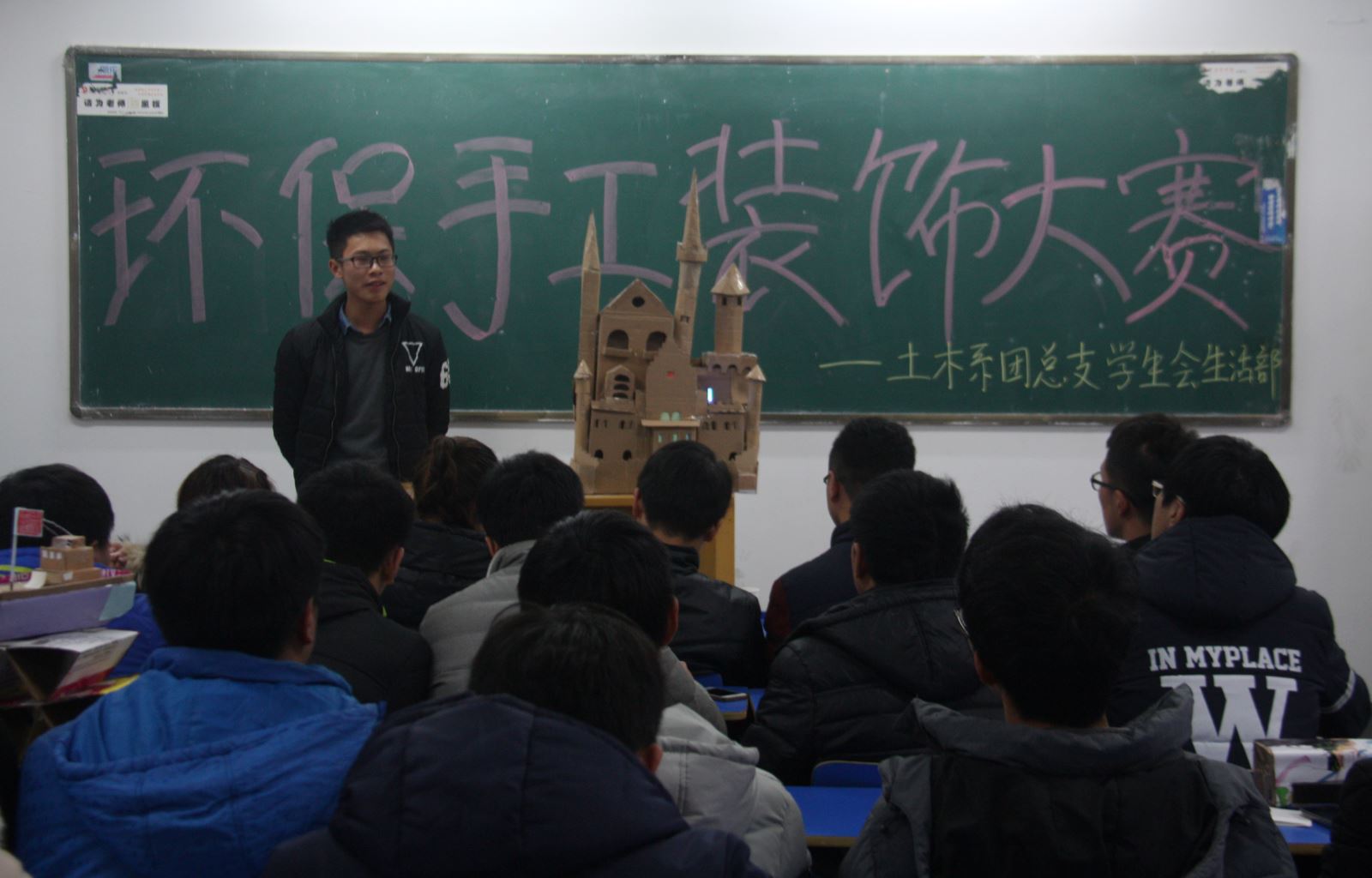 為進一步推動我校大學生的創新實踐工作,營造濃厚的課外學習與創新的氛圍,提高同學們的動手能力及創造能力。12月9日下午,土木工程系 “環保手工裝飾大賽”在北教102教室舉行。