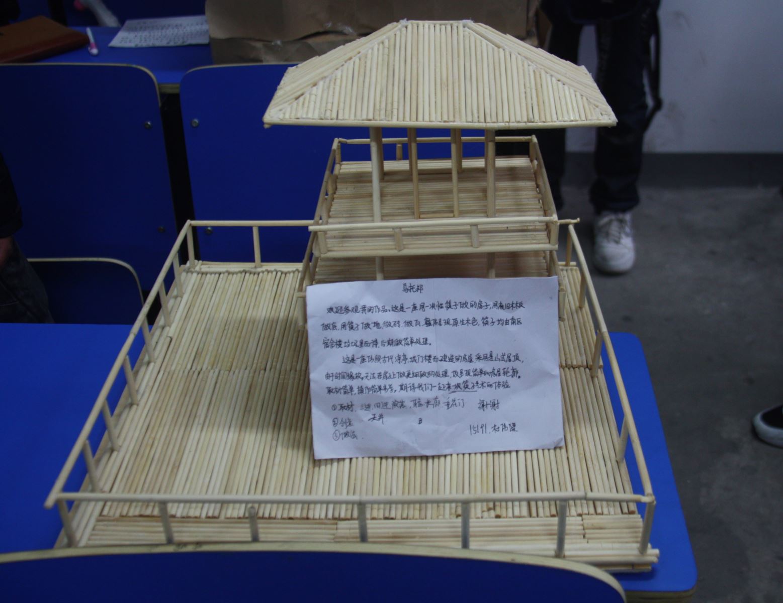 共有24位選手帶著展現各自“環保和諧”理念的作品參加了比賽。他們對作品的創作過程、創作意圖、實用價值等方面進行講解闡述,評委根據選手表現進行打分。首先上場的是15191班楊剛同學,他的作品是“我的城堡”?!斑@個作品的靈感是來自于歐洲著名的建筑——the castle,而且所用的材料均為廢棄的紙盒,經濟環保,美觀大方?!表懥恋慕榻B獲得了評委和觀眾的一致好評。接著15161班胡夢瑩同學帶來的作品“愛心風鈴”不僅外表美觀,而且簡單易做,所用的材料也是平時不被人重視的廢棄物品。她說:“這件作品是要送給我的小侄子的,雖說沒有買的好,但包含著我深厚的感情,我相信他一定會很喜歡。”評委們從作品的外觀、所用的材料、實用價值給予肯定肯定,希望她堅持環保生活;“我的作品是用十天的時間收集的一次性筷子拼接而成的,它是一座仿照古代涼亭而建造的房屋,用廢舊木板做底,用筷子做地、做磚、做瓦。”15191班杜偉健同學介紹說。評委們看到這件作品后都發出了驚訝的聲音,他們對參賽者的創意和制作期間的堅持不懈感到非常欣慰。