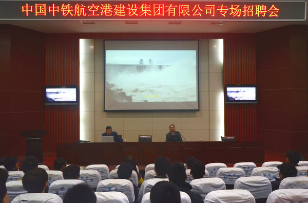 11月12日,中國中鐵航空港建設集團有限公司在我院北區多功能學術報告廳與學生處二樓招聘會議室舉行專場招聘會,本次招聘會主要針對工程機械、工程實驗、工程造價與物流等專業的2016屆畢業生。