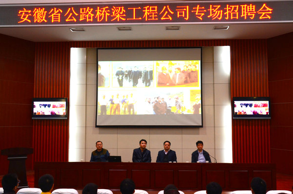 11月16日下午,安徽省公路橋梁工程公司來院召開專場招聘會,計劃招聘路橋、安全、工程機械、物流等專業20名畢業生,來自土木、汽機、管理系的300多名畢業生參加招聘會。