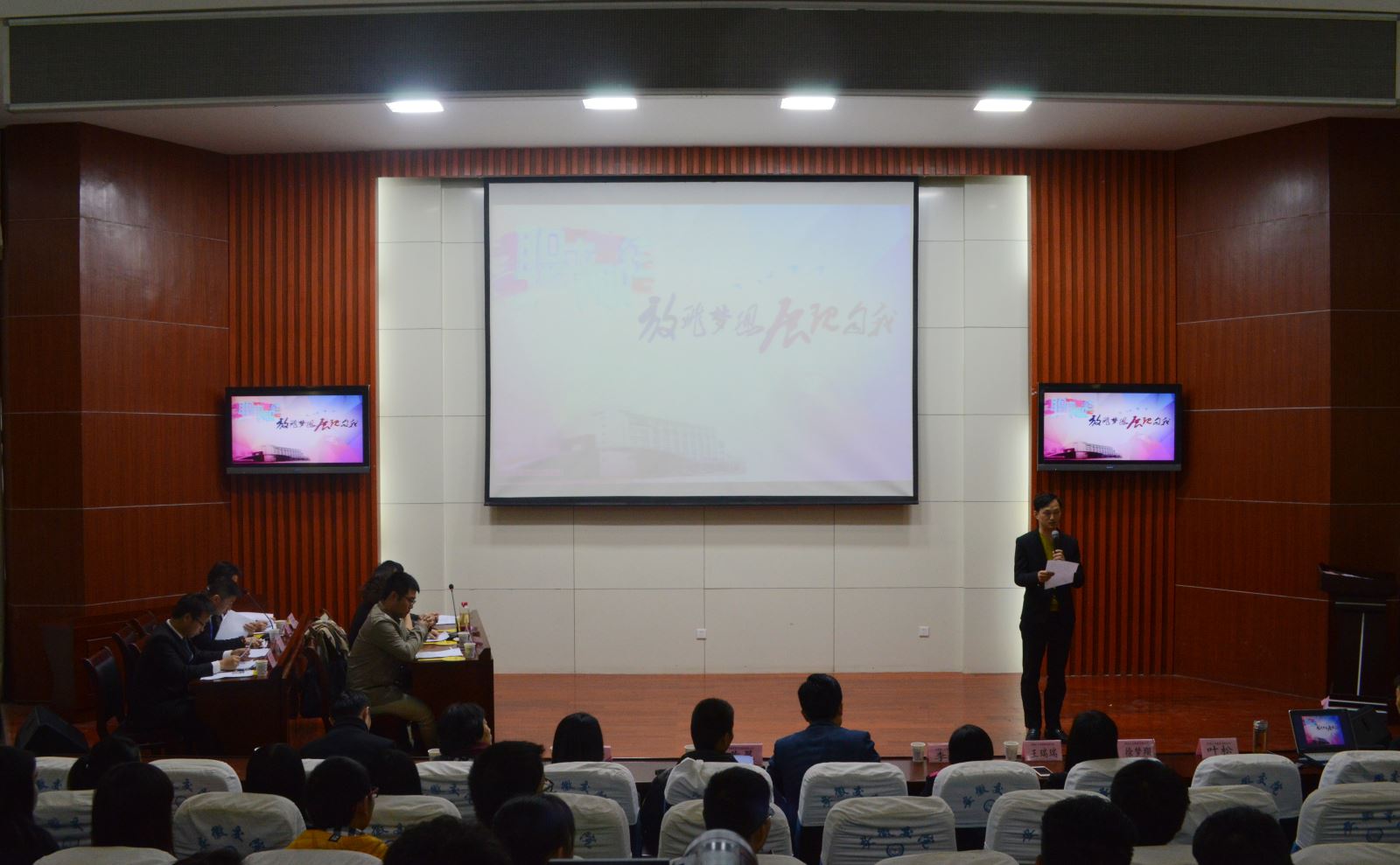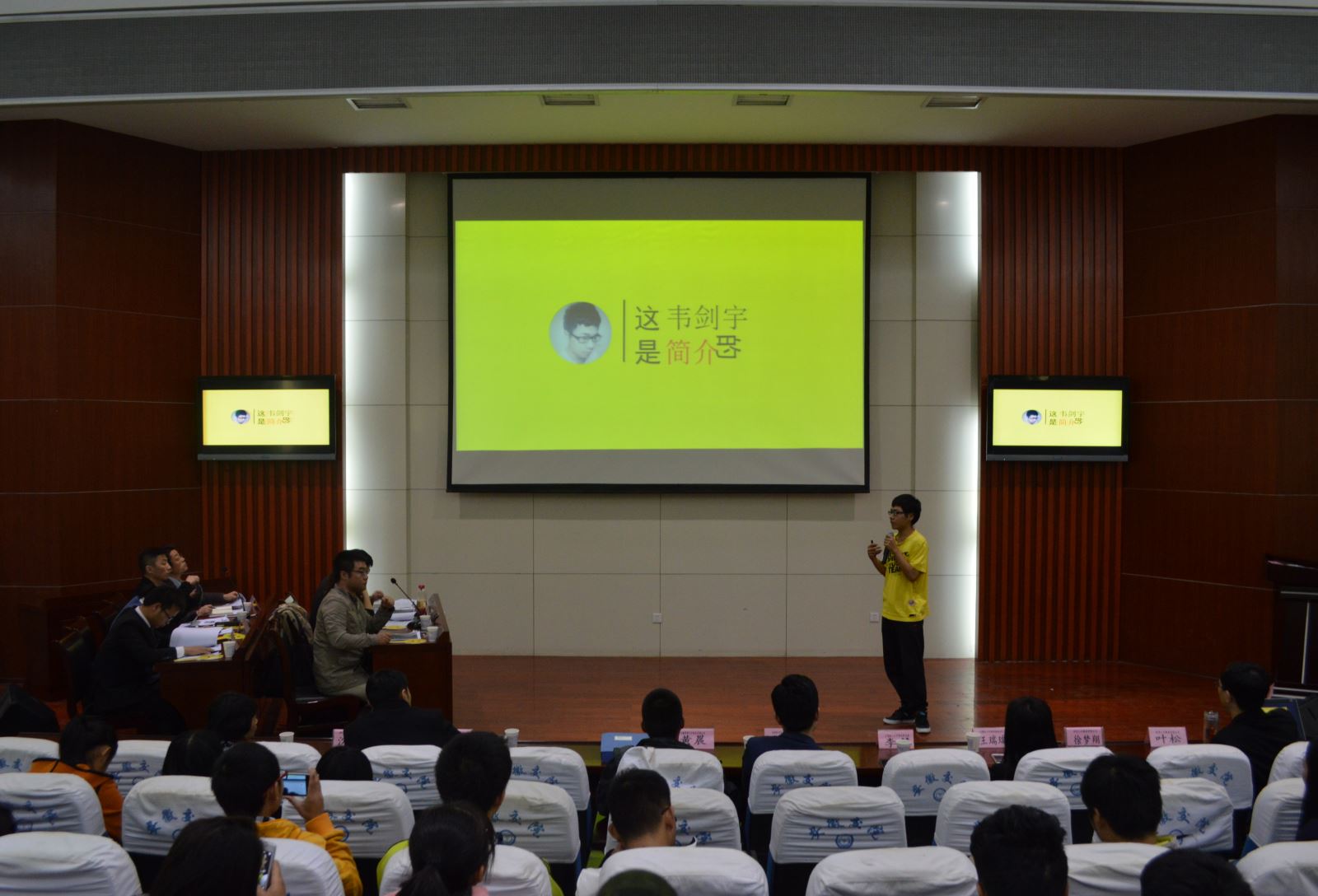 第一個求職者是來自土木工程系的陳翔飛,富有激情和自信的自我介紹贏得了所有面試官的“笑臉”。面對HR的提問也都一一作答,游刃有余,“我很欣賞你,希望以后可以在公司見到你。”合肥香馨建設集團有限公司人力資源總監李維勝對能攬到這樣的人才表示高興。同樣來自14土木工程系的第2位求職者王旭雖然在臺上稍顯緊張,但在談及自己的專業方面卻是十分的自信。3號求職者城信系車輛專業韋劍宇,他穿著與自己ppt相互映襯的黃色T恤,不同的著裝方式吸引了在場所有人的注意力。面對面試官指出的自己的缺點都虛心接受。對公司拋出的橄欖枝,韋劍宇在認真的思考與詢問下,選擇了廈門依思鞋業貿易有限公司人力資源總監吳春頔拋下的誘人的待遇。接下來上場的求職者們,也通過精美的PPT向面試官們展示了自己的個人風采以及求職意向等,均得到了不同招聘公司的認可。
