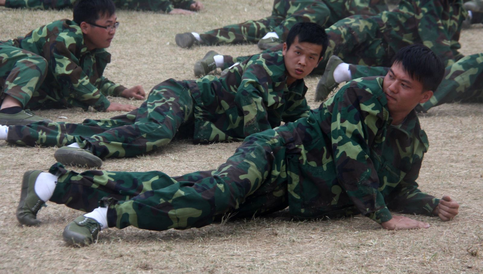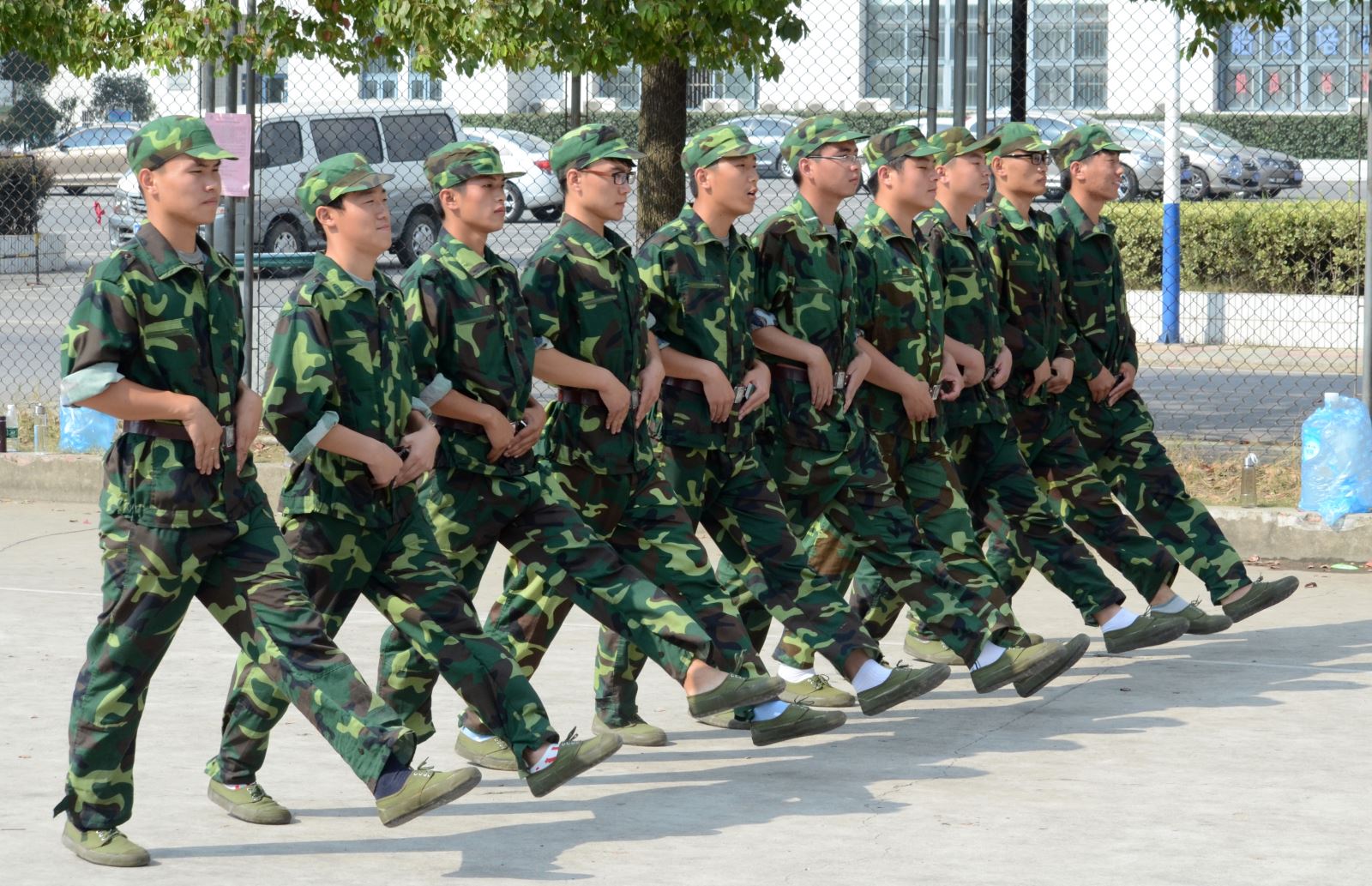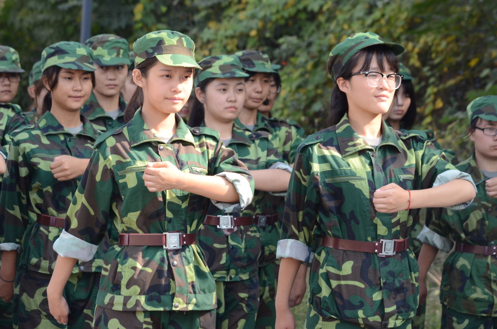 軍訓已經進行一周,盡管赤日當空,但新生們依然精神抖擻地進行著各個項目的訓練。有的同學病了,憑借著頑強的意志,稍有好轉便堅持訓練;在教官親切的關懷和嚴格訓練下,短短幾天里,齊步走、正步走、齊步變正步、解散、集合及分列式等預定訓練科目已初見成效。教官手把手教,同學們認真的練,方隊整齊,精神飽滿,步伐矯健、口令準確、聲音嘹亮。