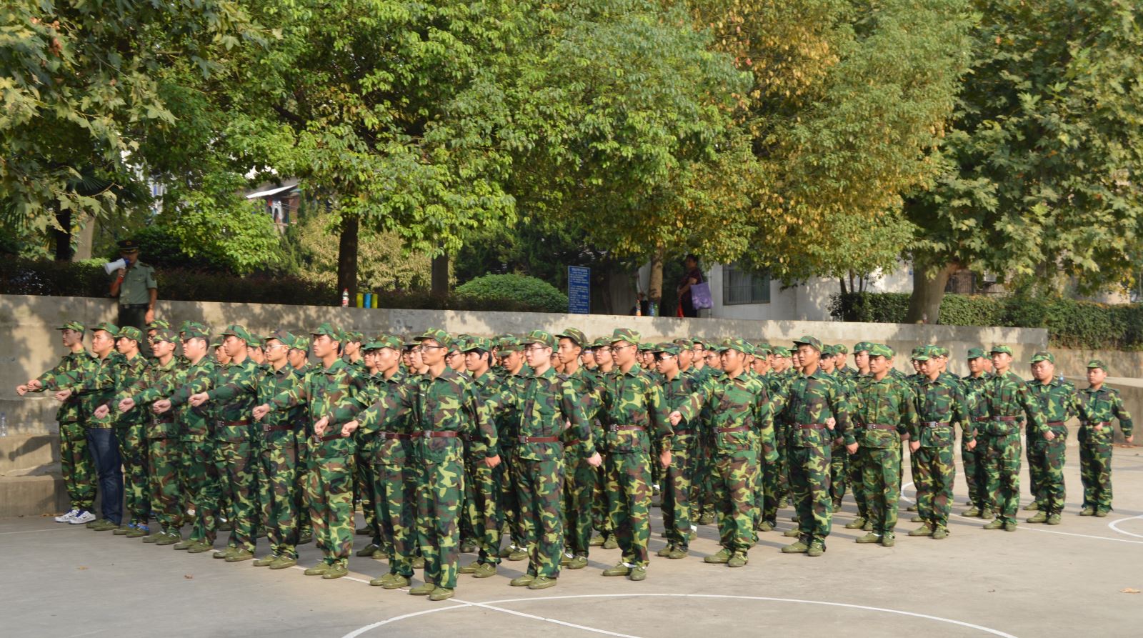 9月17日下午,盡管赤日當(dāng)空,但我院學(xué)子軍訓(xùn)熱情不減,在南區(qū)籃球場上新生們在教官的注視下個(gè)個(gè)昂首挺胸,軍姿站的筆直。