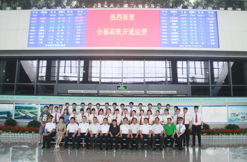 依依惜別母校,深深師院情長留心間。6月30日上午10:00,學院為城信系運營管理專業“2015屆合肥地鐵訂單班”的34名畢業生在合肥高鐵南站隆重舉行了一場特殊的畢業典禮。院長竇曉光教授、黨委副書記(主持工作)孫順利、黨委副書記、紀委書記陳明、副院長王豐勝、李亮、上海鐵路局合肥站站長李亞偉、黨委書記李昌勤、副站長李傳寶、副站長陳旭東、城市軌道交通與信息工程系主任李銳、黨總支書記喻謹參加典禮。