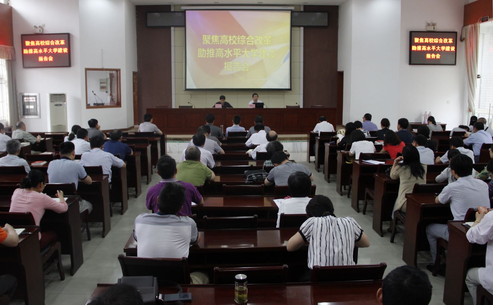 為扎實(shí)開展學(xué)院“三嚴(yán)三實(shí)”專題教育,深化教學(xué)改革,強(qiáng)化教學(xué)管理,提高教學(xué)質(zhì)量,6月3日下午,學(xué)院特邀省教育廳高教處處長儲(chǔ)常連教授來院作題為“聚焦高校綜合改革 助推高水平大學(xué)建設(shè)”專題輔導(dǎo)報(bào)告。報(bào)告會(huì)由院黨委副書記、院長竇曉光教授主持。院領(lǐng)導(dǎo)班子全體成員、在職科級(jí)以上干部、各系部副高以上人員和企業(yè)主要負(fù)責(zé)人聽取報(bào)告會(huì)。