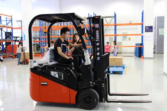 本學期實訓的內容是叉車模塊,針對平衡重式叉車(四輪、三輪)與手動液壓式叉車(地牛)進行分組輪崗實訓。在平衡重式叉車組,老師為同學們詳細介紹了叉車的基礎構造以及駕駛的基本規范和練習要求后開始了同學們的試練階段,他們依次在老師的陪同下開動叉車,練習駕駛的平穩性與直行度,通過反復練習,打磨自己的操作技能與技巧。大部分同學都是第一次開叉車,經歷了從開始的戰戰兢兢到后來的躍躍欲試,再到最后考核時的基本熟練操作這一過程。而同學們最期待的莫過于每屆物流實訓后舉辦的地牛比賽,根據同學們運用“地?!辈嫒∨c運送貨物出入庫的速度和精準度決戰出每屆的“地牛之王”。本次實訓也如期進行了地牛的比賽,全班同學們分成了若干個小組,以接力賽的形式運用地牛叉取與運送貨物去完成相應的出入庫作業。整場比賽是速度與精準度的較量,通過比賽讓同學們深度投入到物流實訓中,從實操中學習技能,從比賽中純熟技巧,同學們紛紛表示實訓時間雖短但收獲頗多。