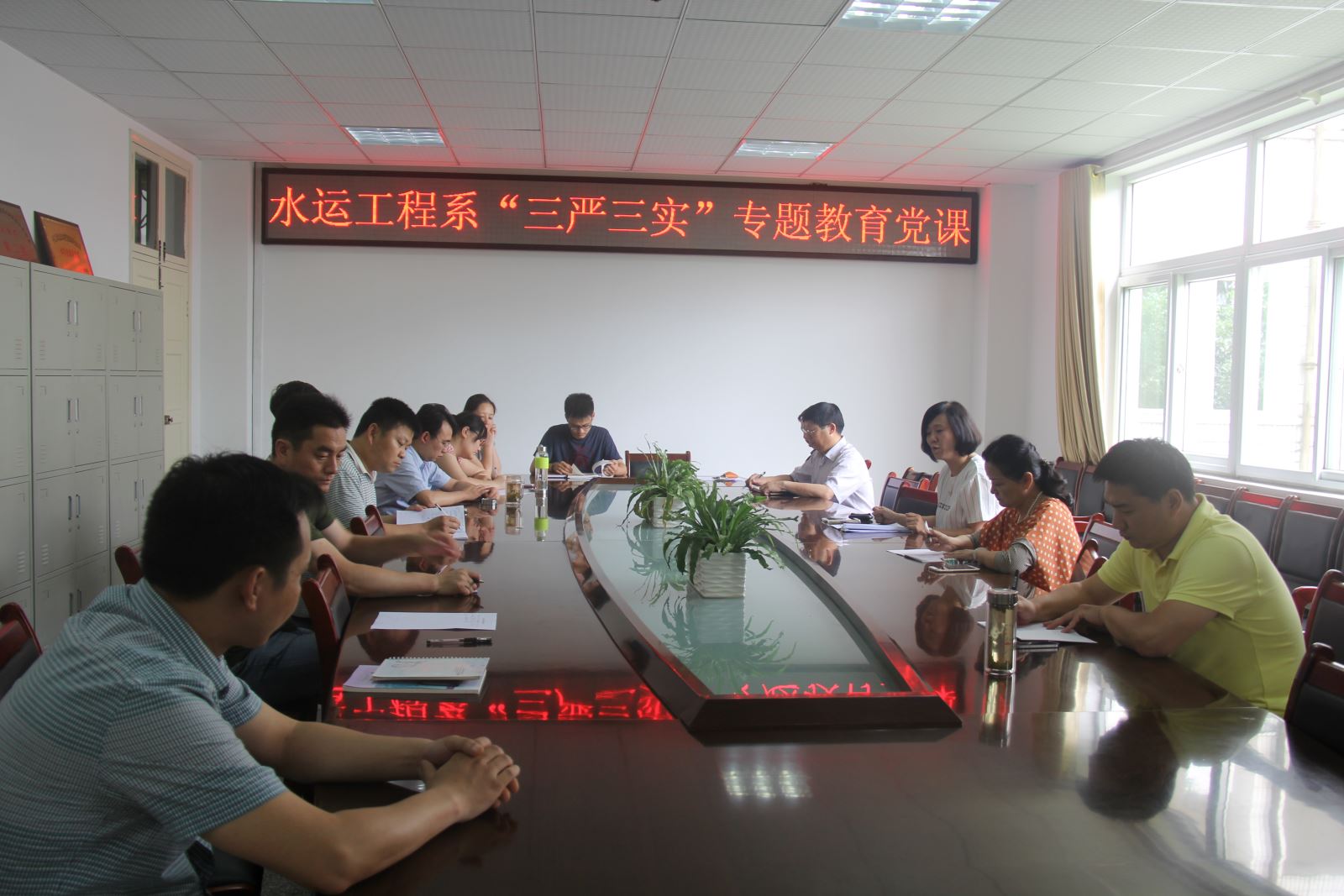 根據院黨委“三嚴三實”專題教育實施方案部署,6月9日下午,水運工程系召開黨課報告會,系黨支部書記、副主任朱蓉作題為“踐行‘三嚴三實’,做‘忠誠干凈擔當’的好黨員干部”專題教育黨課輔導,系副科級以上干部和全體黨員參加會議。