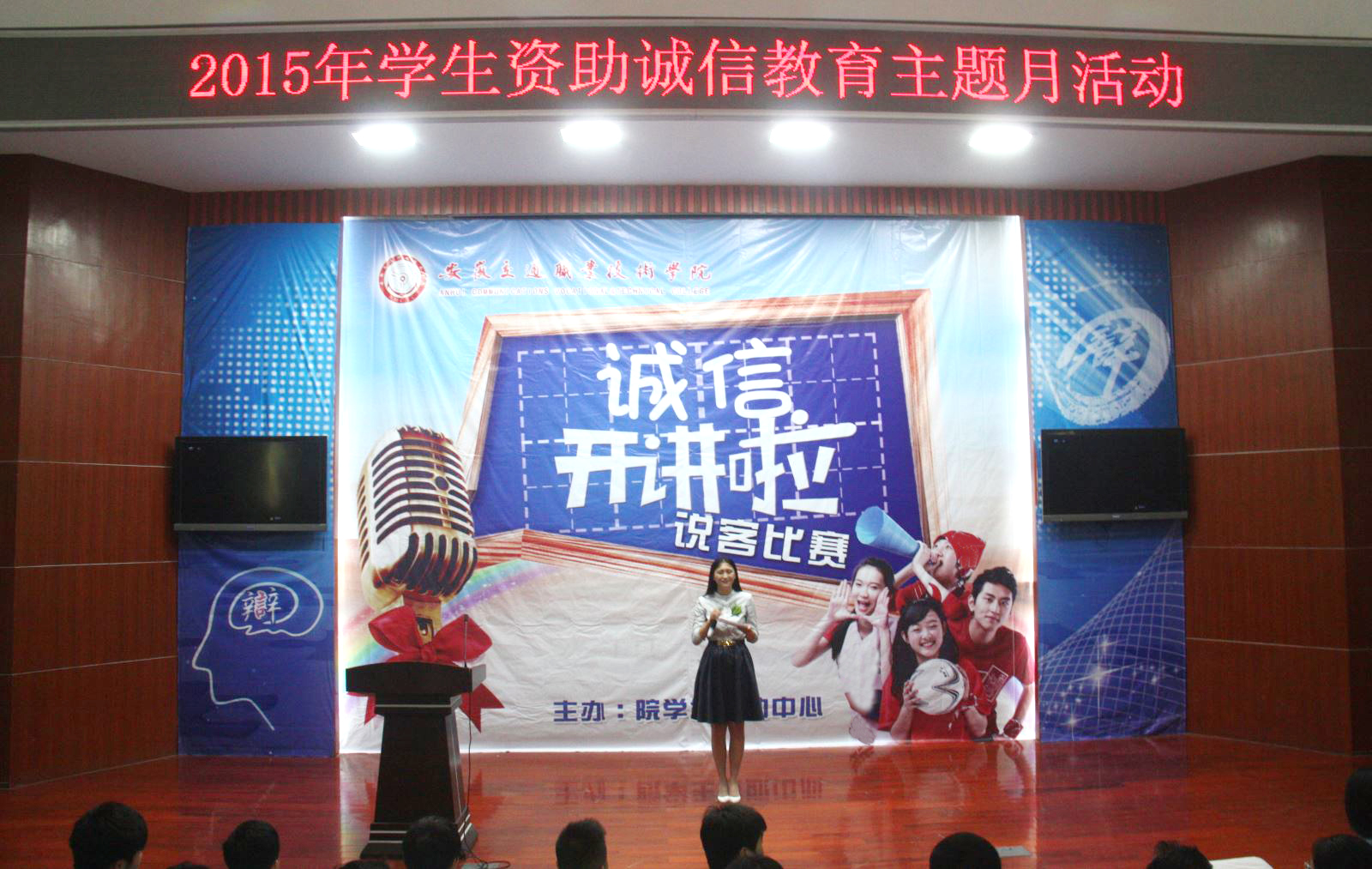 5月27日晚7:00,院學生資助中心主辦的“誠信開講了,說客比賽”在多功能報告廳舉行。