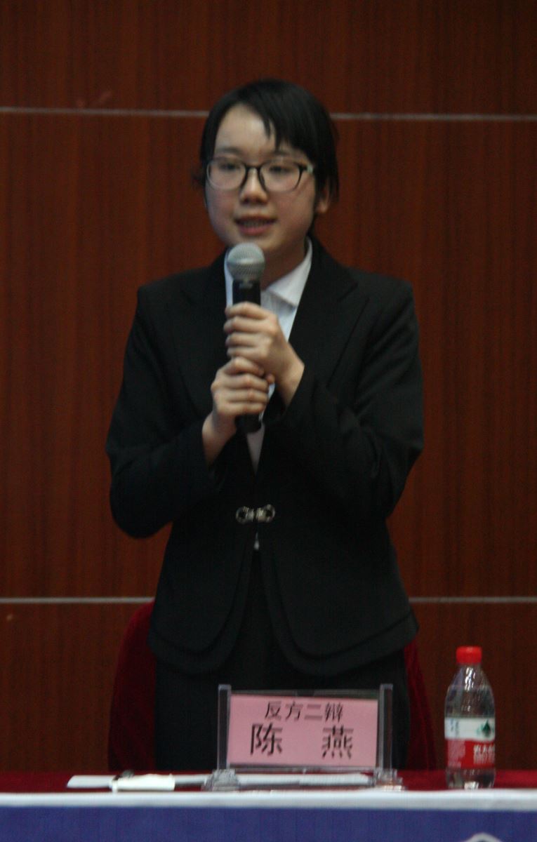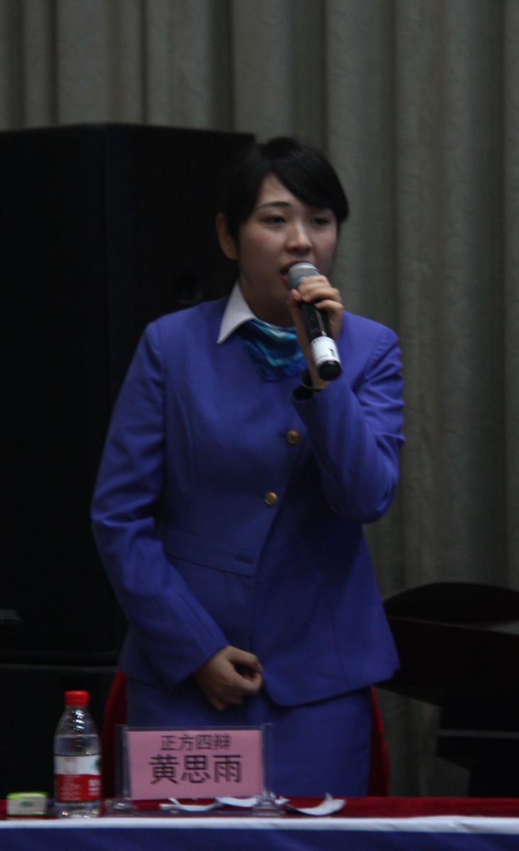 經(jīng)過一輪輪激烈的“廝殺”,城信系代表隊“城信先鋒隊”和管理系代表隊“管理攬月隊” 共同爭奪季軍席位,雙方圍繞“創(chuàng)業(yè)者的特質(zhì)自謙和自信哪個更為重要”展開精彩的辯論。在開篇立論環(huán)節(jié),正方“城信先鋒隊”一辯從對創(chuàng)業(yè)者和自信的定義解釋出發(fā),分別從“老子的古訓”、“自信決定高度”、“創(chuàng)業(yè)的艱辛必然需要創(chuàng)業(yè)者的自信”和“自信更能激發(fā)人的潛力”四個方面為已方的觀點打下了理論基礎。反方“管理攬月隊”一辯則從自謙和自信的定義出發(fā),通過“自謙更能決定創(chuàng)業(yè)的成敗”、“要用自謙的態(tài)度去擁抱錯誤”、“自謙的人將會得到更多人的幫助”這三點闡述了已方的觀點。在攻辯環(huán)節(jié),正方緊抓反方的漏洞據(jù)理力爭,反方也不甘示弱,積極反擊,引得臺下觀眾掌聲不斷。在自由攻辯環(huán)節(jié),雙方實力不分伯仲,你來我往、針鋒相對,但又不失風度。辯手們旁征博引、妙語連珠,使現(xiàn)場氣氛逐漸升溫。反方二辯陳燕用史玉柱的經(jīng)歷為正方設下圈套,出色口才和敏捷的思維,令臺下觀眾為之折服贏得陣陣掌聲。隨著時間的流逝,到了鞏固戰(zhàn)果,拼死一搏的總結陳詞環(huán)節(jié),正反方四辯黃思雨抓住對方語言上的漏洞及觀點上的模糊引經(jīng)據(jù)典進行駁斥做出結論,同時再次表明己方觀點。