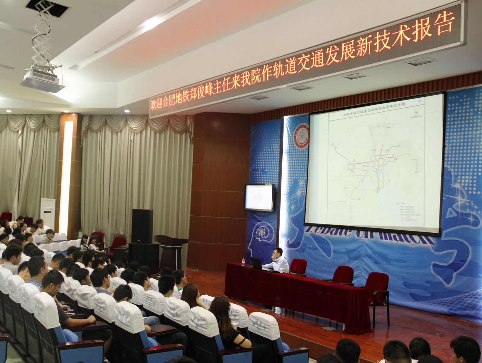 5月14日晚7點,合肥地鐵鄭軍峰主任在多功能報告廳為城市軌道交通與信息工程系同學作軌道交通發(fā)展新技術報告。