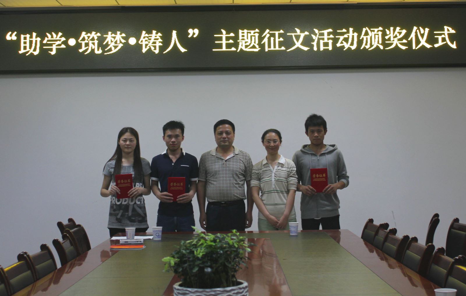 5月19日晚7點, 由院學生資助中心主辦的2015年“助學.筑夢.鑄人”主題征文活動頒獎儀式在學生處二樓會議室舉行。