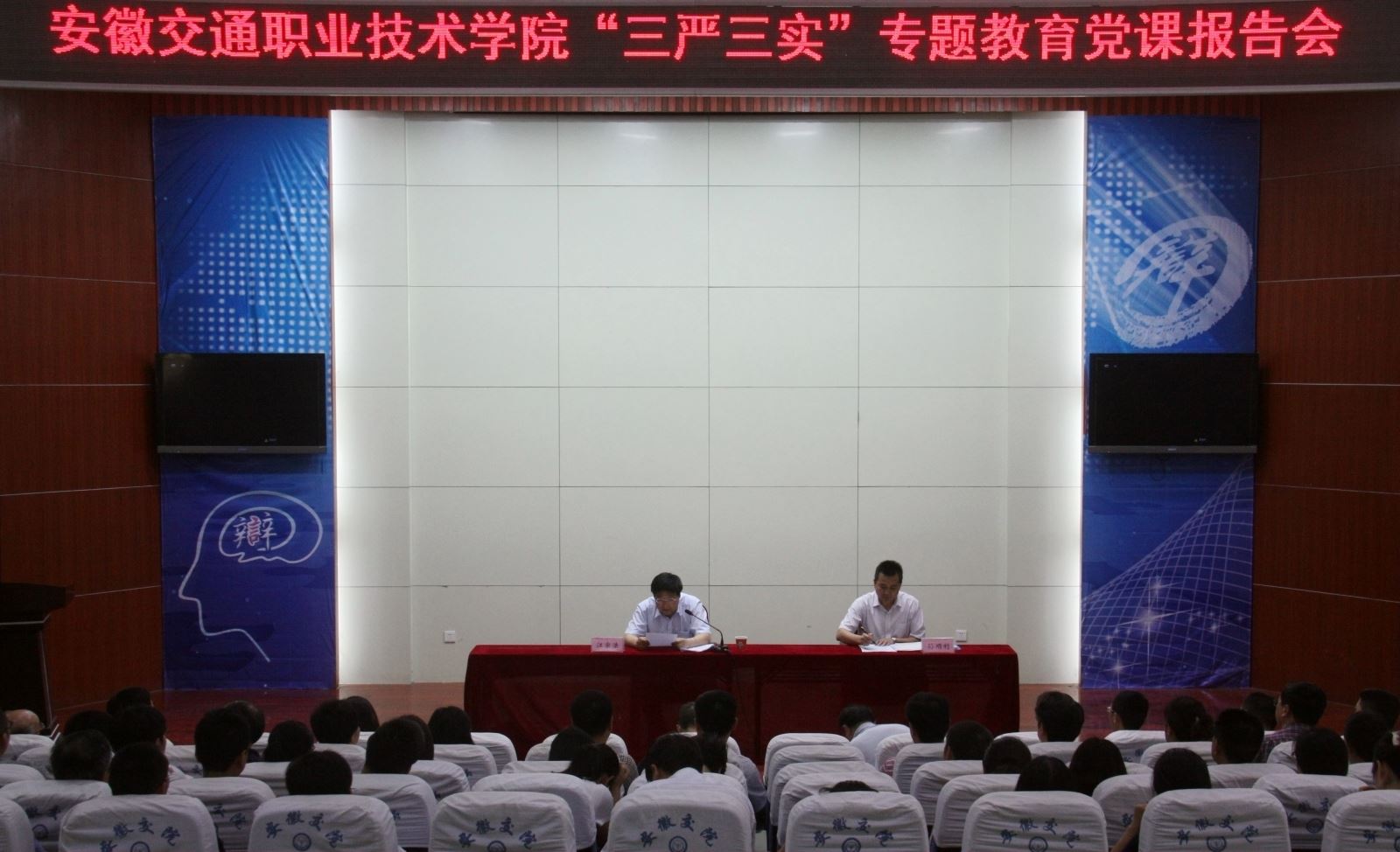 5月20日下午,學院“三嚴三實”專題教育黨課報告會在學術報告廳召開,省交通運輸廳黨組成員、總工程師江宗法同志應邀來院作題為“踐行‘三嚴三實’要求,建設高素質學校”輔導報告,院黨委副書記(主持黨委工作)孫順利同志主持會議,全院在職黨員認真聆聽了報告。