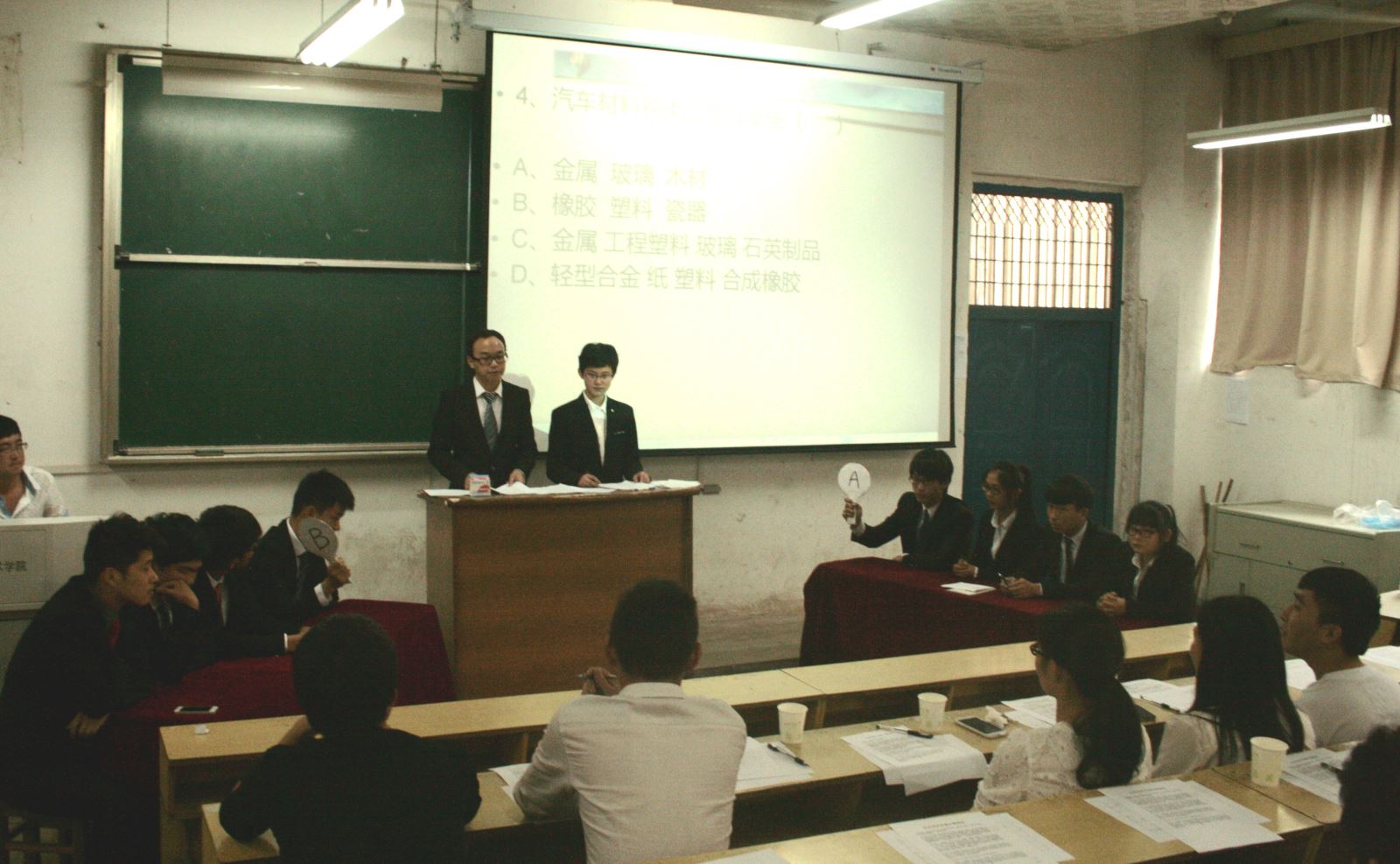 為弘揚(yáng)汽車(chē)文化,提升學(xué)生專(zhuān)業(yè)素養(yǎng),5月6日晚,汽機(jī)系第五屆汽車(chē)文化知識(shí)競(jìng)賽總決賽在教學(xué)樓西階101教室展開(kāi)。通過(guò)初賽和半決賽的激烈競(jìng)爭(zhēng)14級(jí)制造班和14級(jí)營(yíng)銷(xiāo)(1)班成功晉級(jí)總決賽。