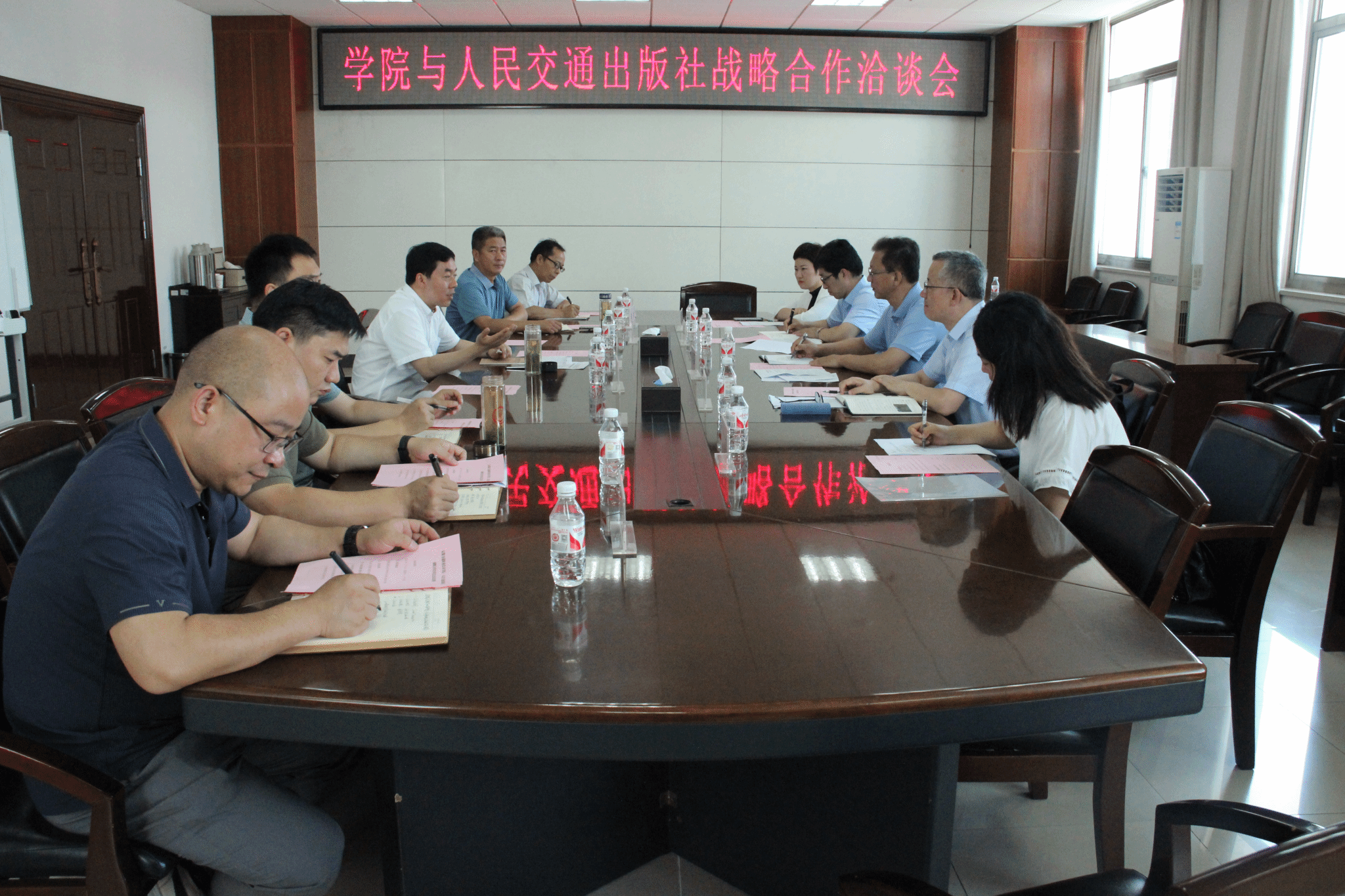 7月4日,我院與人民交通出版社戰(zhàn)略合作洽談會在信息樓七樓會議室舉行。院黨委副書記、院長孫曉雷,院黨委委員、副院長梁洪波,人民交通出版社副社長王振軍,人民交通出版社教育分社副社長翁志新,各教學(xué)系負(fù)責(zé)人及相關(guān)工作人員參加會議。