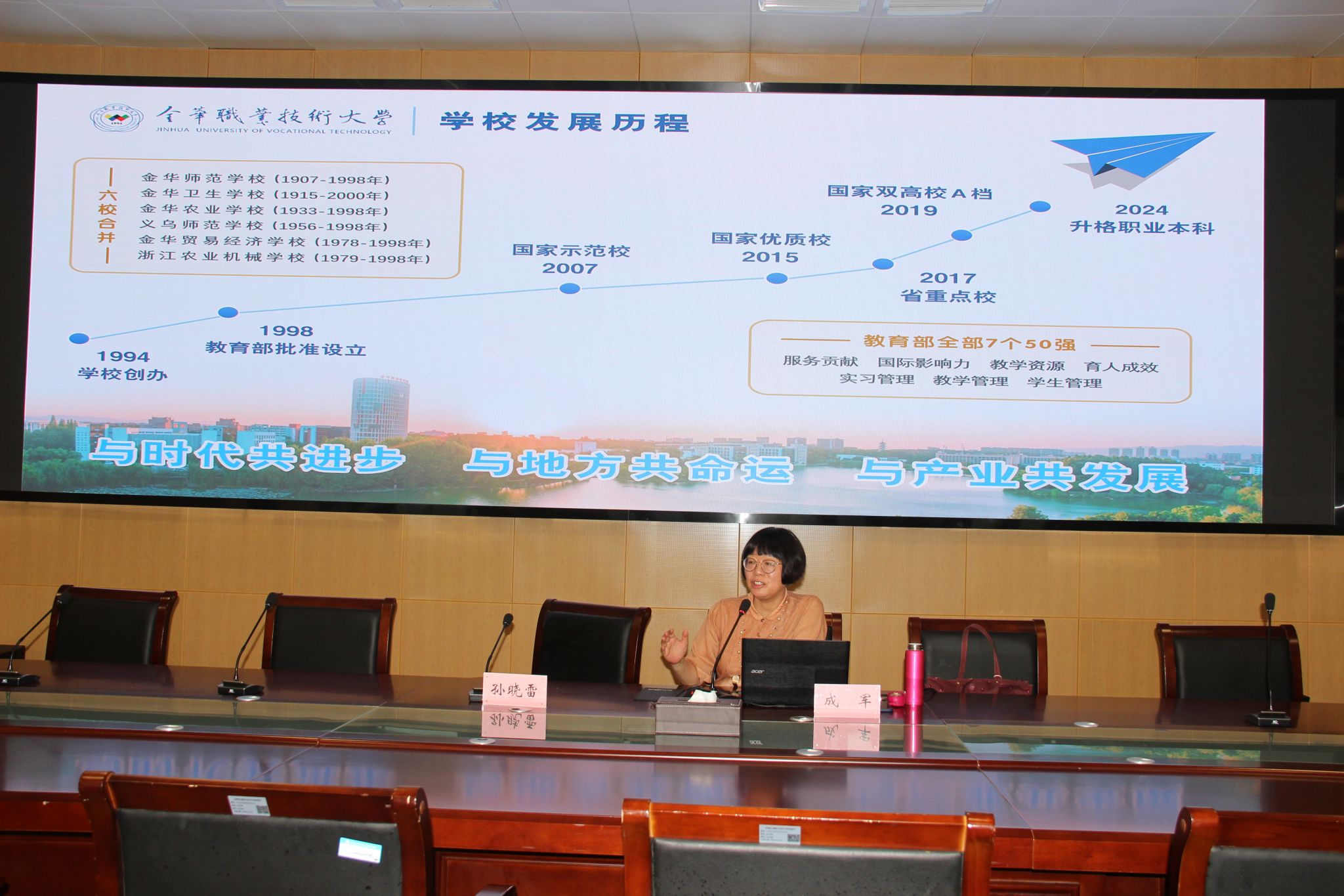 會上,成軍教授介紹了金華職業技術學院升為金華職業技術大學的發展歷程,圍繞著職教本科建設的政策依據,職教本科申辦的基本流程,職教本科申報材料的要求,職教本科辦學的金職思考四個方面進行了深入闡述。對《本科層次職業教育專業設置辦法》等政策文件,撰寫職教本科所需準備的入冊材料、學校論證報告、專業論證報告、橫冊材料和裝盒材料等文件材料,梳理文件的結構及核心要點,闡述了對本科職業教育的探索和分析。