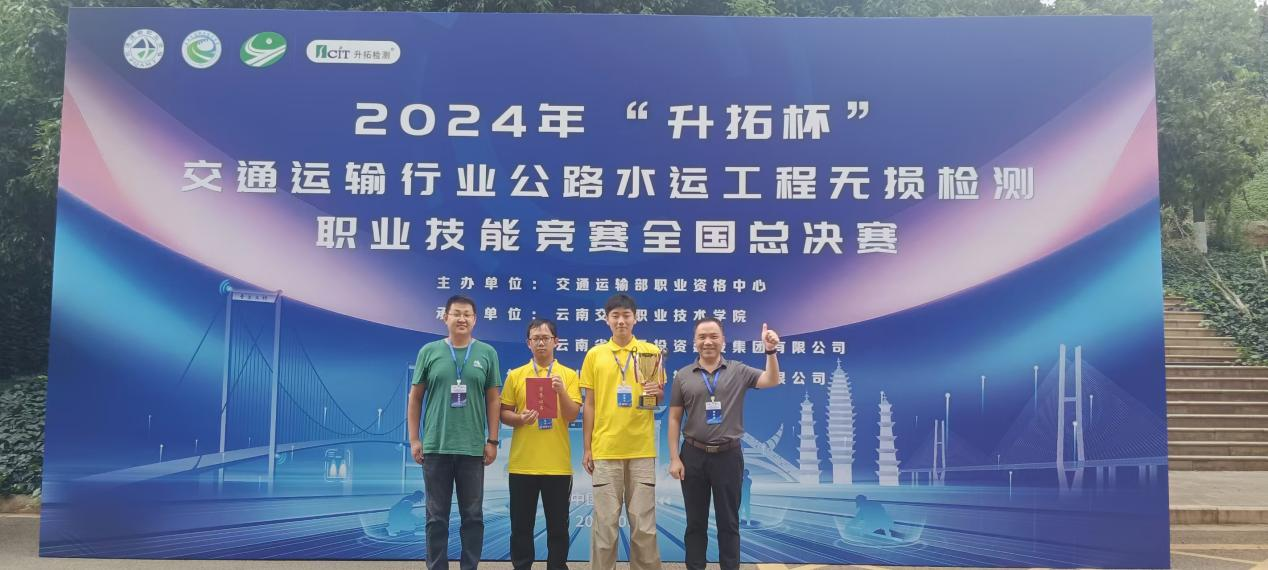 9月24日,由交通運輸部職業資格中心主辦的2024年“升拓杯”交通運輸行業公路水運工程無損檢測職業技能競賽全國總決賽在云南交通職業技術學院落下帷幕。由我院土木系學子陳昊、朱軍亮組成的代表隊脫穎而出,在58支學生組參賽隊伍中以優異表現名列第九,斬獲國賽二等獎。