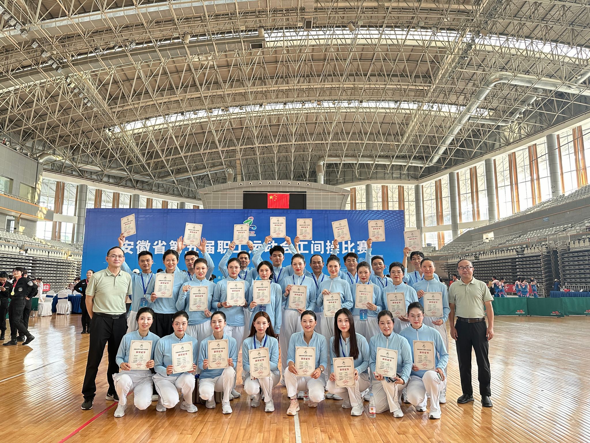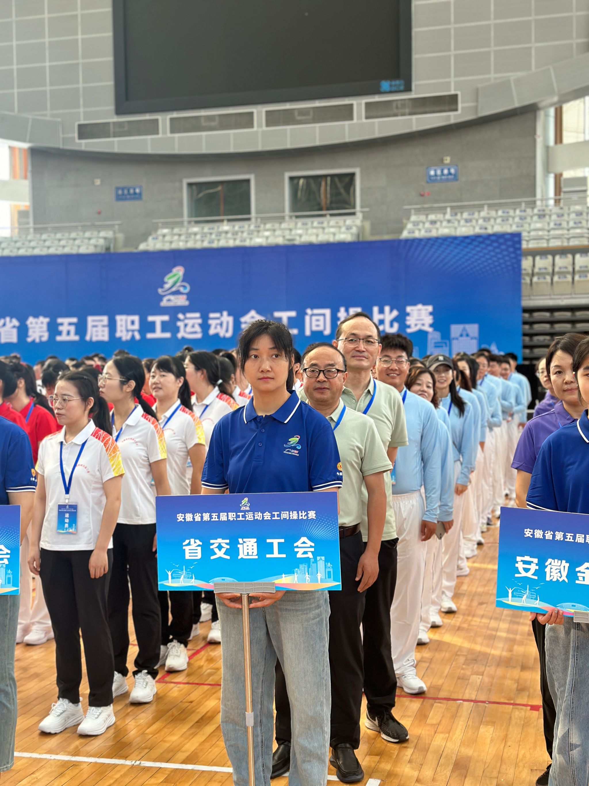 9月27日上午,安徽省第五屆職工運動會工間操比賽在淮南市隆重舉行,由我院及省公路工程技工學校26名教職工組成的省交通工會代表隊傾情演繹、綻放光彩,在比賽中榮獲第四名的好成績。