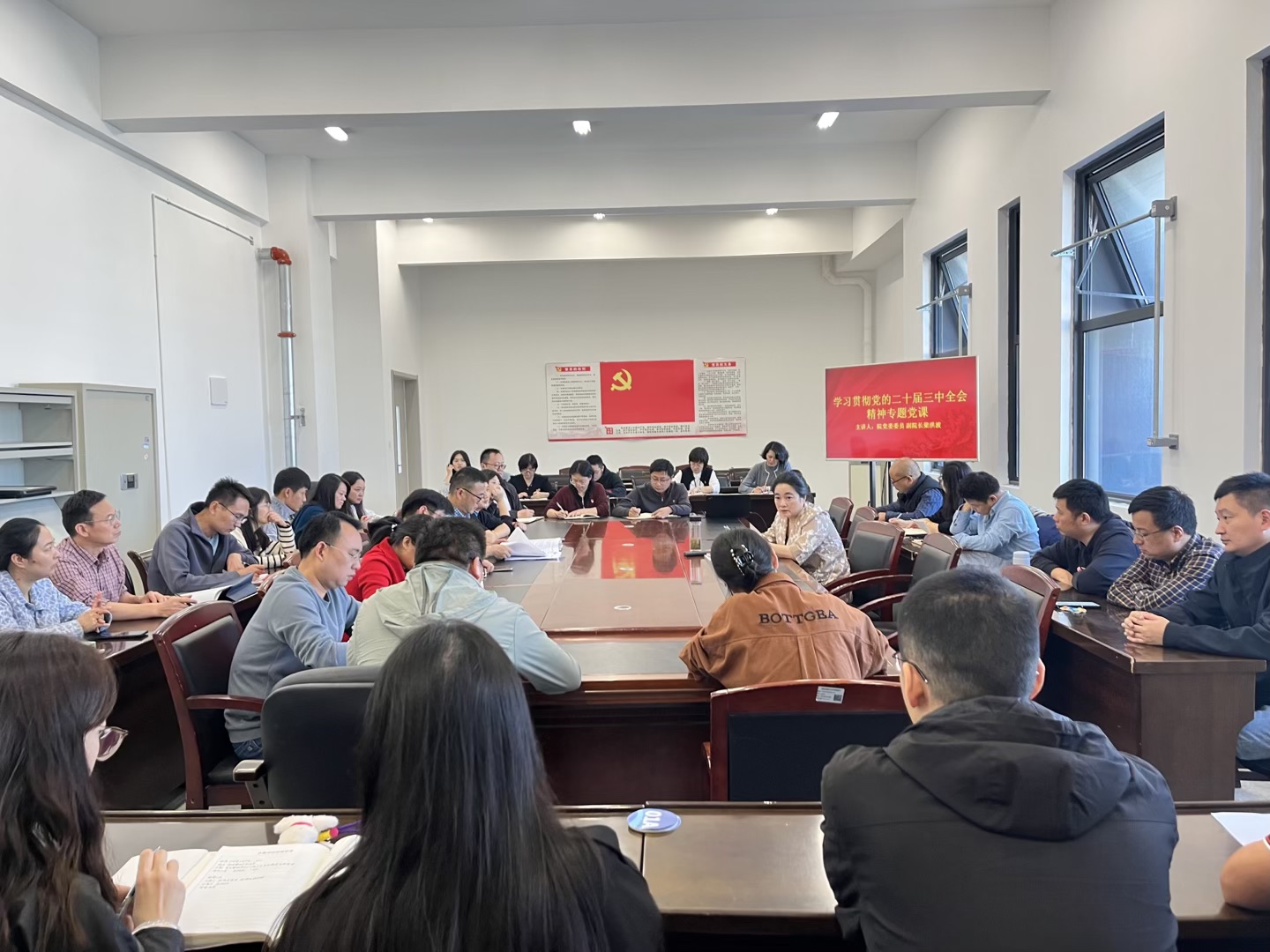 為深入學(xué)習(xí)貫徹黨的二十屆三中全會精神,教育引導(dǎo)全體黨員干部把思想和行動統(tǒng)一到全會精神上來,10月9日下午,院黨委委員、副院長梁洪波講授學(xué)習(xí)貫徹黨的二十屆三中全會精神專題黨課。汽機(jī)系黨總支書記沈勁松主持會議,汽機(jī)系、教務(wù)處和圖書館全體黨員參加了黨課報(bào)告會。