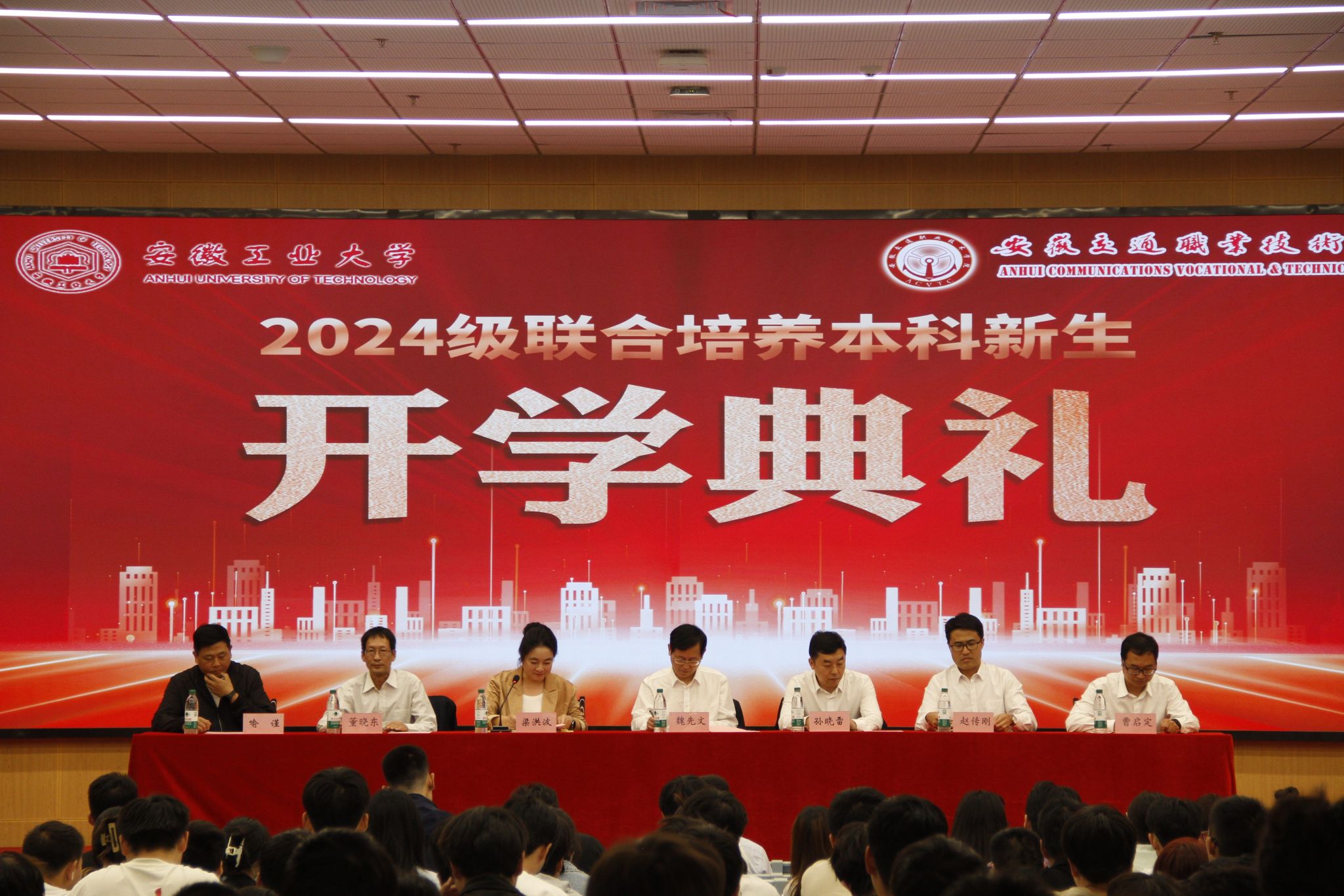 10月16日下午,安徽工業大學與我院聯合培養的2024級本科新生開學典禮在學院新橋校區圖書館禮堂舉行。安徽工業大學黨委副書記、校長魏先文,院黨委副書記、院長孫曉雷及兩校相關部門領導出席。開學典禮由院黨委委員、副院長梁洪波主持。本科教學系領導、教師代表及242名本科新生共同參加了典禮。