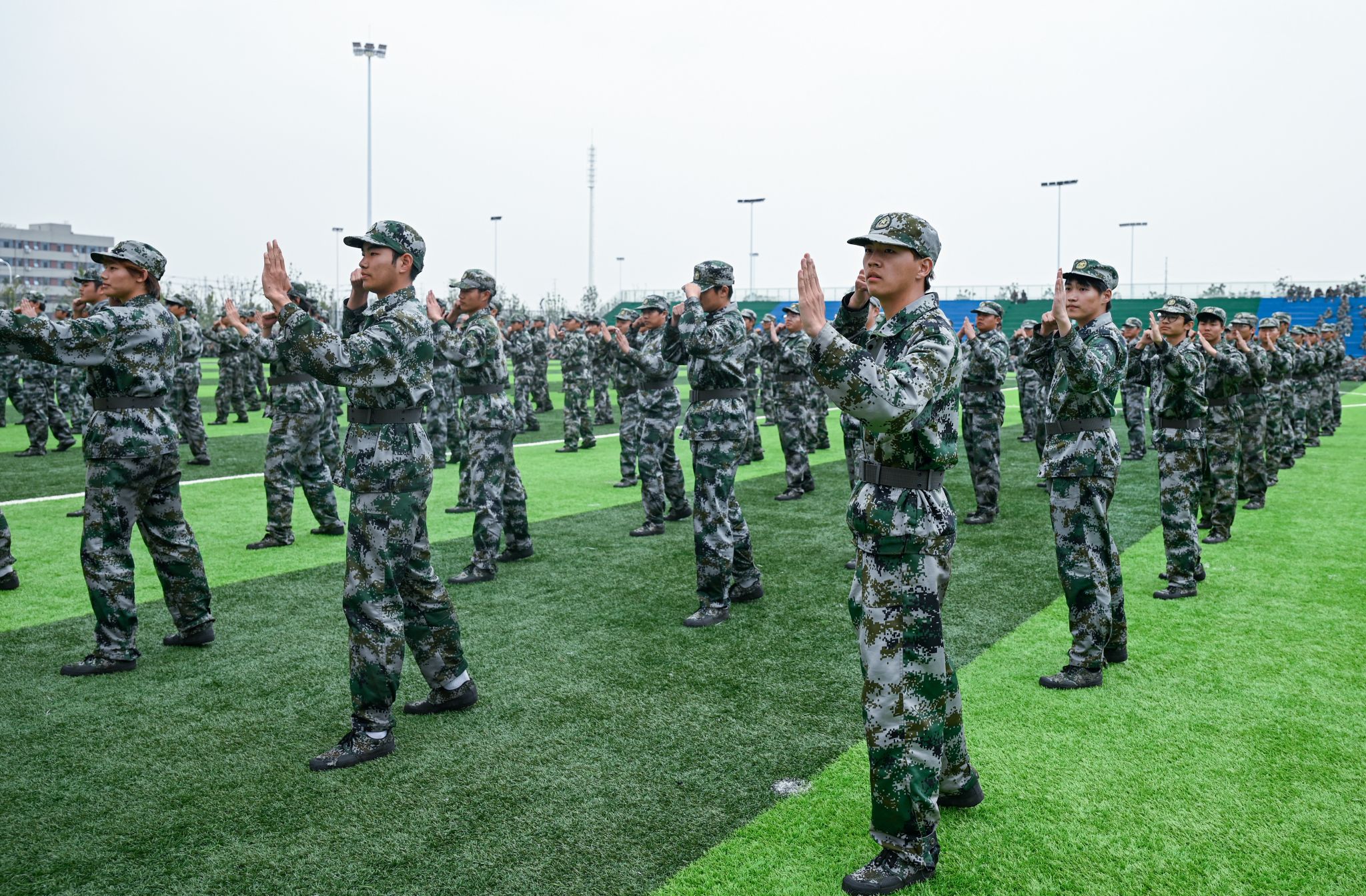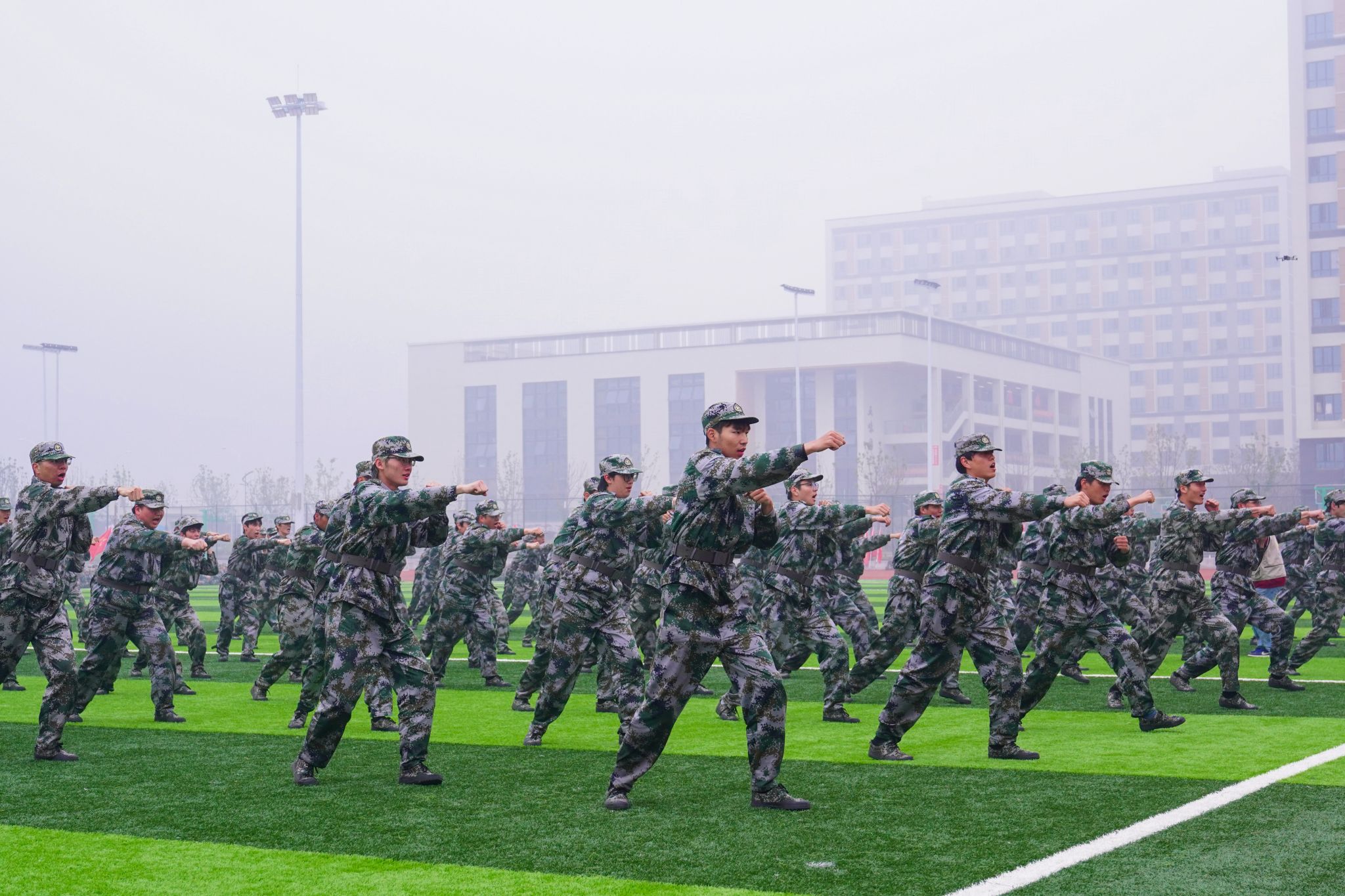 “院長同志,2024級新生軍訓(xùn)成果展示前集合完畢,是否開始,請您指示”“開始!”,隨著一聲令下,各方陣在帶隊教官的指令下依次通過主席臺進(jìn)行分列式匯報展示,隨后藍(lán)天繪圖、軍體拳、匕首操、刺殺操、擒拿拳、棍術(shù)、戰(zhàn)術(shù)等匯報項目接連上演,鏗鏘有力的步伐、整齊劃一的動作、意氣風(fēng)發(fā)的斗志,震撼全場,令人熱血沸騰。