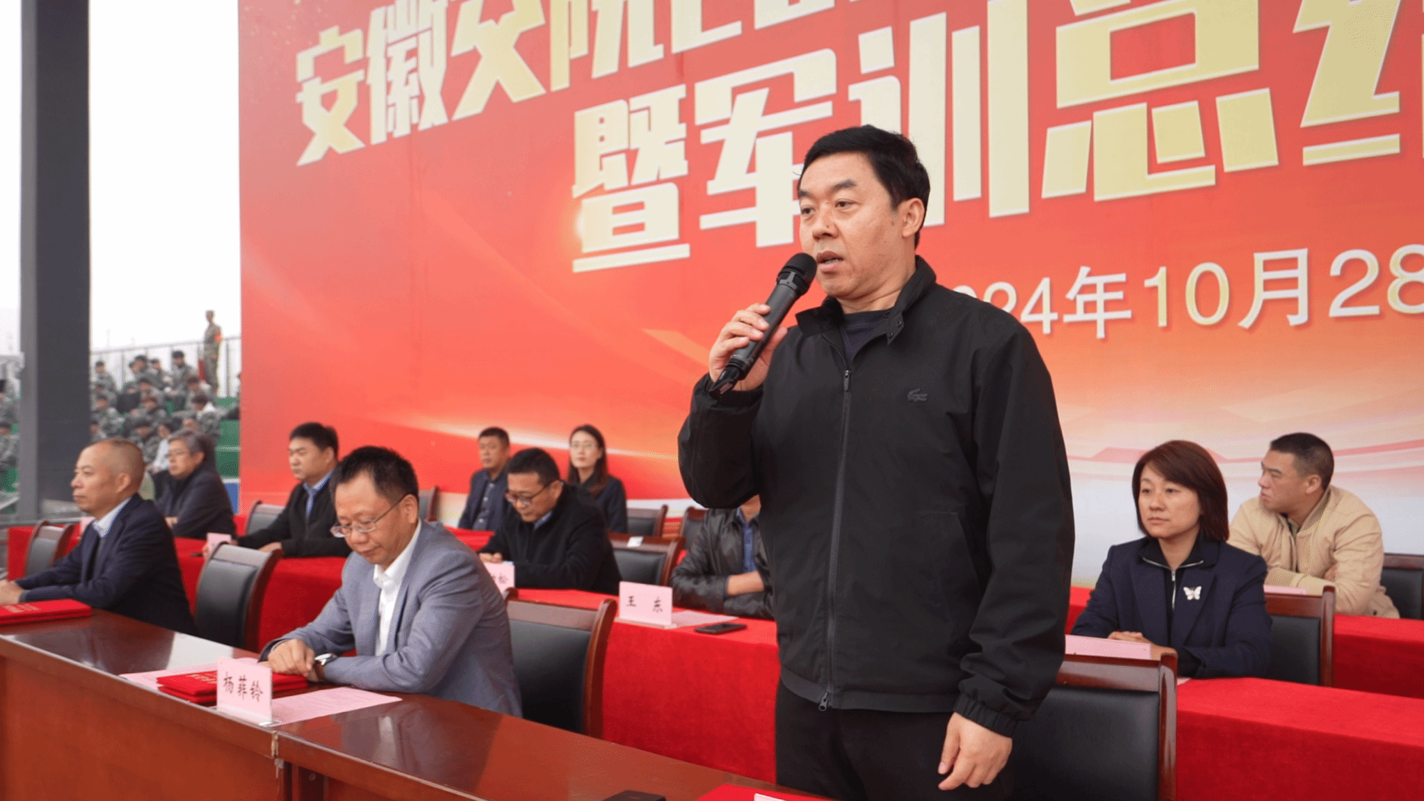 10月28日上午,學(xué)院2024級新生開學(xué)典禮暨軍訓(xùn)成果匯報大會在新橋校區(qū)操場隆重舉行。院黨委書記楊菲鈴出席大會并講話,院黨委副書記、院長孫曉雷、院黨委委員、副院長韋兵、院正處級督導(dǎo)員陳明、各系和相關(guān)職能部門負(fù)責(zé)人、包河區(qū)武裝部承訓(xùn)教官和全體2024級新生參加會議,會議由院黨委委員、學(xué)生處處長喻謹(jǐn)主持。