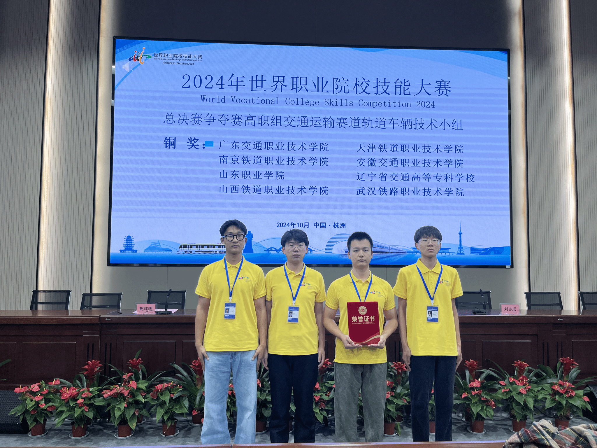 10月27日至30日,2024年世界職業(yè)院校技能大賽總決賽爭奪賽軌道車輛技術(shù)賽項在湖南株洲舉行。由我院系董鋼、楊婷婷兩位老師指導(dǎo)的李何奇、夏曉勇、王子同和姜文博四位參賽選手,在與來自全國的51支代表隊展開激烈角逐,憑借扎實的專業(yè)知識、精湛的實操技能以及出色的應(yīng)變能力,在賽場上脫穎而出,最終榮獲銅獎。