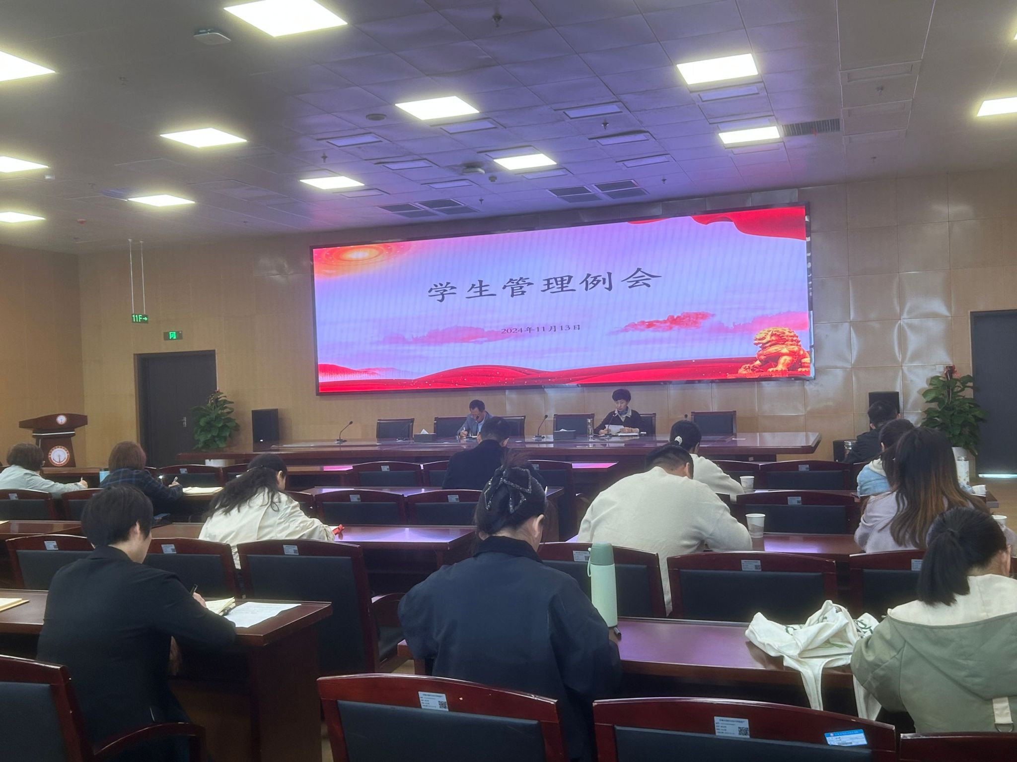 11月13日上午,學生處在綜合樓11樓會議室召開學生管理工作例會。院黨委書記楊菲鈴出席會議并講話,院黨委委員、學生處處長喻謹主持會議。各系書記、主任輔導員參加會議。