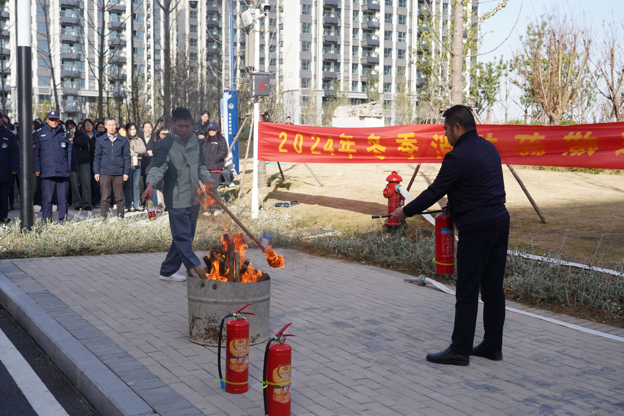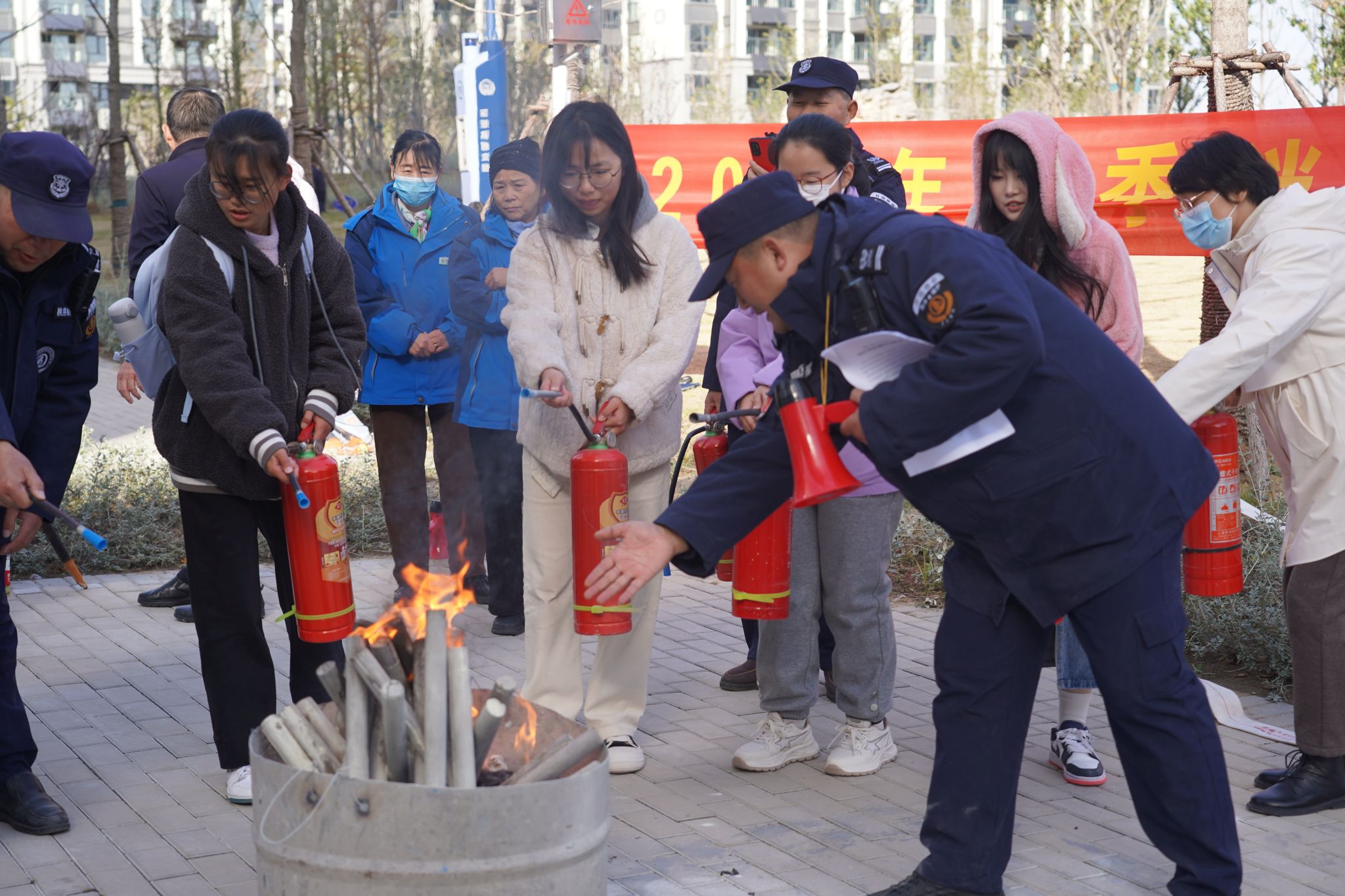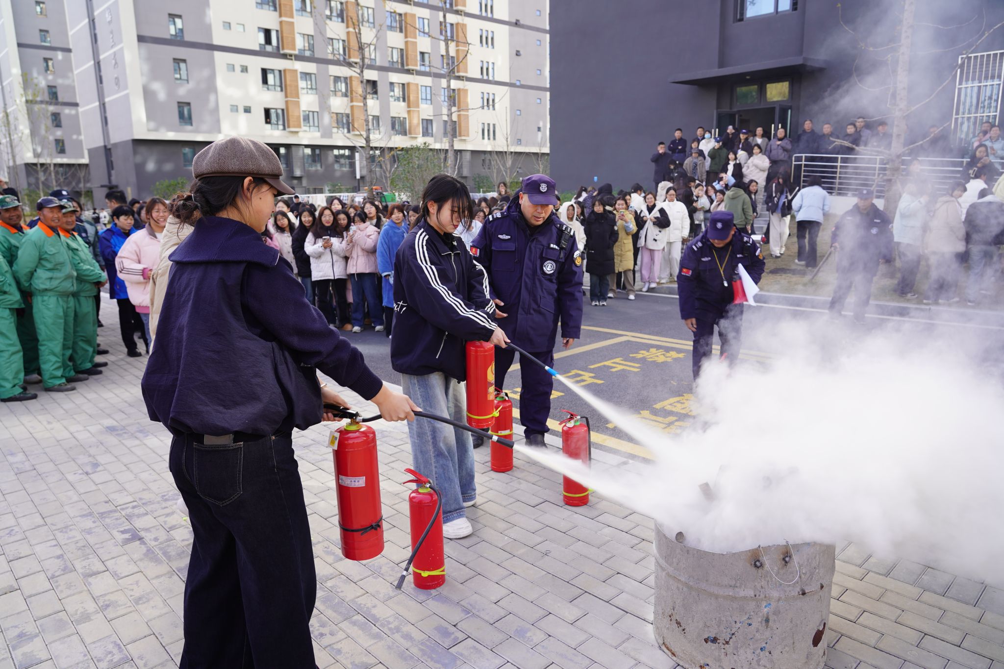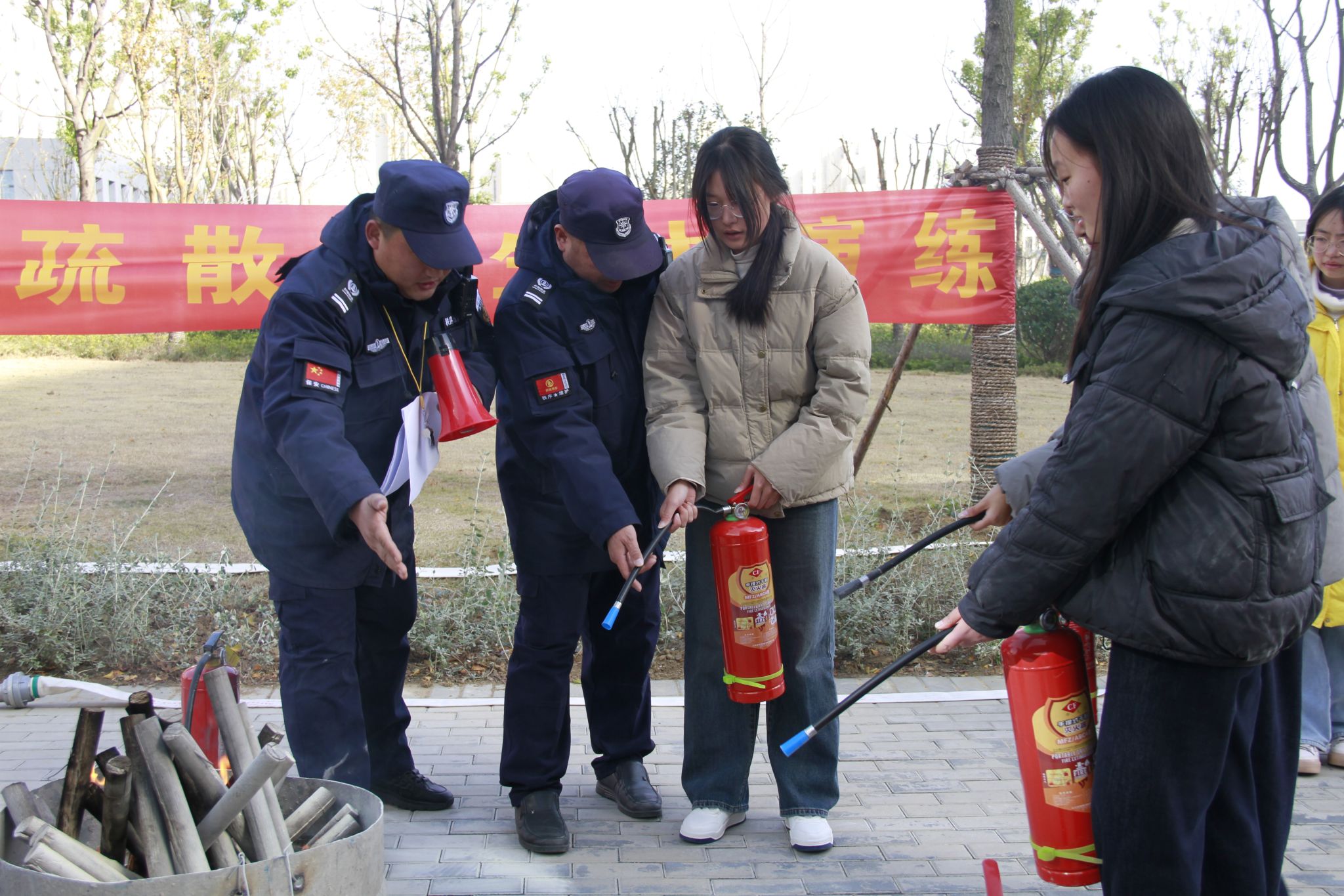 隨后,保衛處老師向同學們講解演示了滅火器的正確使用方法,并邀請同學們親身體驗模擬,讓大家在操作實踐中掌握滅火技能,牢記滅火器“一提,二拔,三握,四壓”的使用口訣,使同學們對火災撲救有了更直觀的認識。