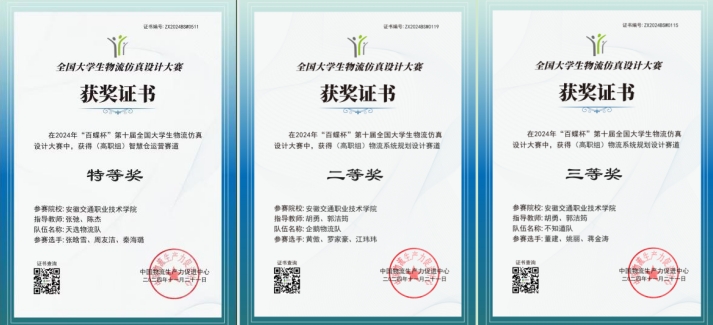 11月9日至10日,由中國物流生產(chǎn)力促進(jìn)中心主辦,上海百蝶教育科技有限公司承辦,中國供應(yīng)鏈產(chǎn)教聯(lián)盟協(xié)辦的2024年“百蝶杯”第十屆全國大學(xué)生物流仿真設(shè)計大賽總決賽落下帷幕。我院管理工程系胡勇、郭潔筠、陳杰、張弛四位老師帶領(lǐng)的三支隊伍(1隊:張晗雪、周友潔、秦海璐,2隊:黃傲、羅家豪、江瑋瑋,3隊:董建、姚麗、蔣金濤)分別獲得特等獎、二等獎、三等獎的優(yōu)異成績!
