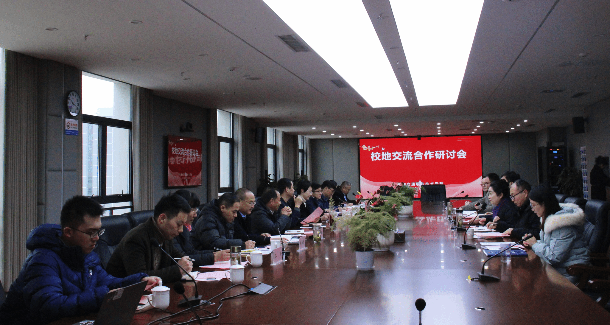 為發(fā)揮校地雙方優(yōu)勢,深化互利合作共贏,促進(jìn)共同發(fā)展,學(xué)院于12月10日上午在綜合樓六樓會議室召開校地交流合作研討會。淮南市科技局黨組成員、副局長周超,壽縣縣政府副縣長王素苗,壽縣經(jīng)開區(qū)黨工委委員、紀(jì)工委書記徐純寬及壽縣科技局、人社局、財政局、壽縣經(jīng)開區(qū)經(jīng)濟(jì)發(fā)展局、壽縣科技成果轉(zhuǎn)化促進(jìn)中心等部門相關(guān)負(fù)責(zé)人來校參會;院黨委副書記、院長孫曉雷,院黨委委員、副院長梁洪波,院黨委委員、學(xué)生處處長喻謹(jǐn),財務(wù)處及教務(wù)處相關(guān)領(lǐng)導(dǎo)等出席會議。會議由梁洪波主持。