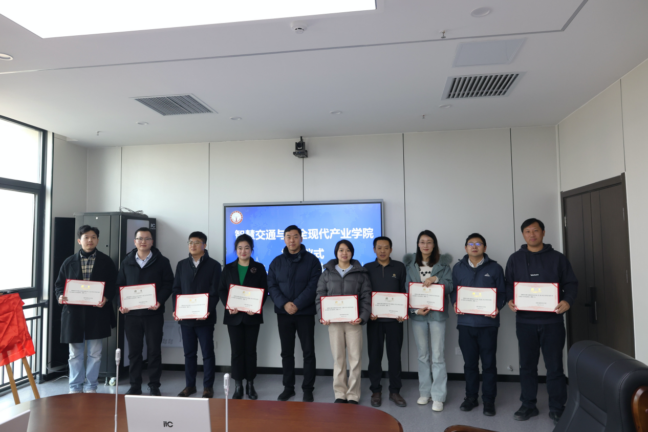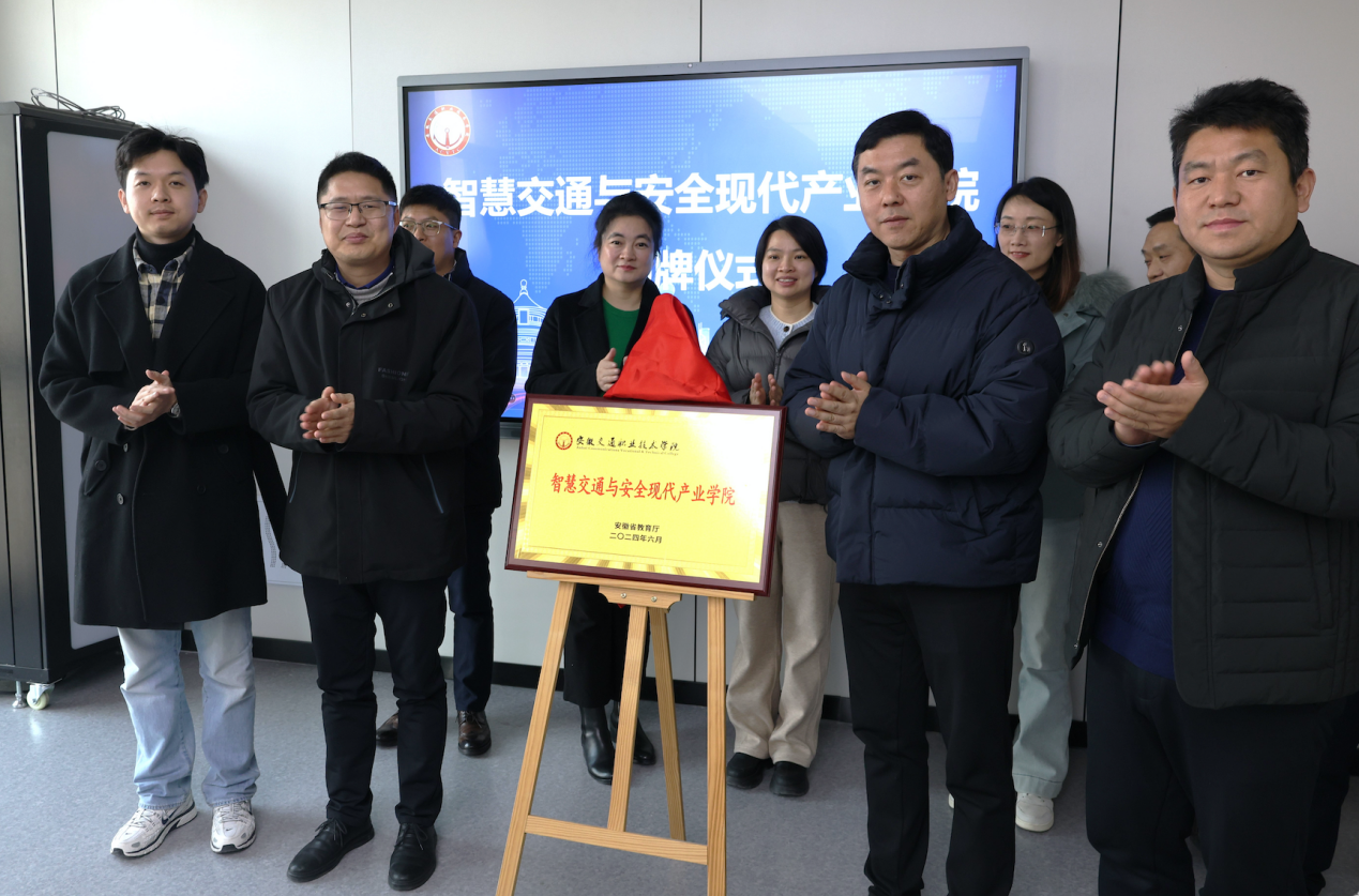 12月26日下午,學院智慧交通與安全現代產業學院揭牌儀式暨第一屆理事會會議在我院舉行。華為技術有限公司安徽政企副總經理劉小虎、合肥教育總經理李濤、產教融合業務總監郭恒民、合肥教育客戶經理朱長林,新華三信息安全技術有限公司安徽代表處副總經理李文濤、教育行業代表張勇、北京智象未來科技有限公司施琦,院黨委副書記、院長孫曉雷,院黨委委員、副院長梁洪波,城信系主任蘭清群、教務處副處長魏化永、呂冬梅,城信系副主任李志成、城信系單列博士等出席會議。會議由梁洪波主持。