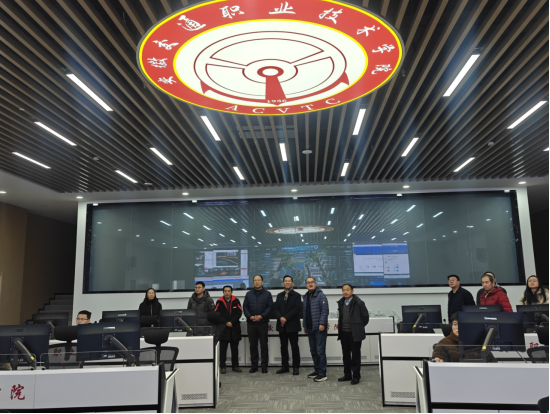 金兆勇一行首先參觀了學院航空管路施工實訓室、航空緊固件拆裝實訓室、標準線路施工實訓室、飛機維護虛擬實訓室(2D)、飛機維修訓練模擬實訓室(3D)、航空發動機維修綜合實訓室、飛機維護綜合實訓室(機庫)等區域,對學院注重實踐教學、提升學生專業技能的做法給予了高度評價。隨后,調研組參觀了指揮大廳,學院在數字化轉型和智慧校園建設中的做法和成效獲得了調研組的贊揚和肯定。