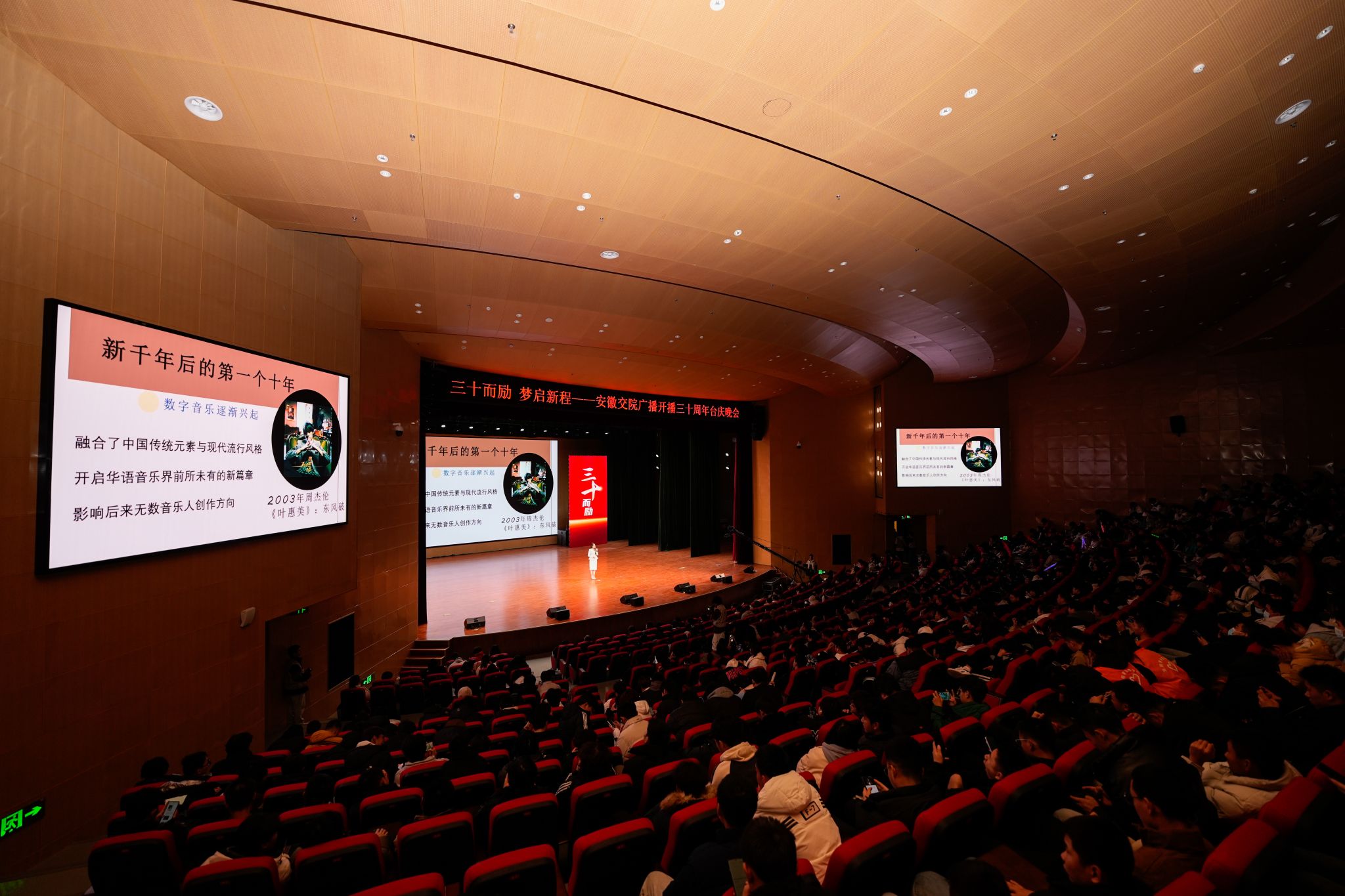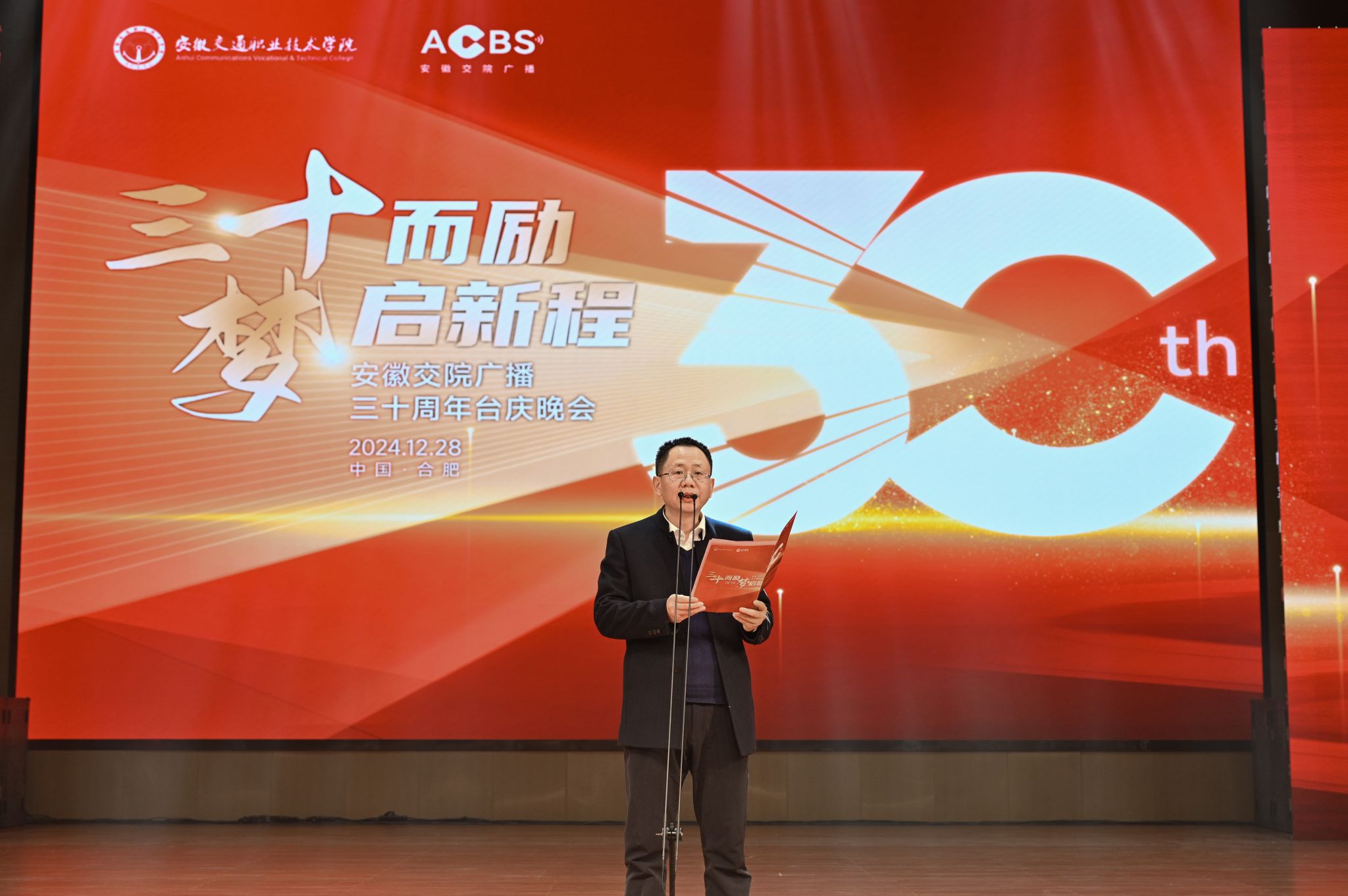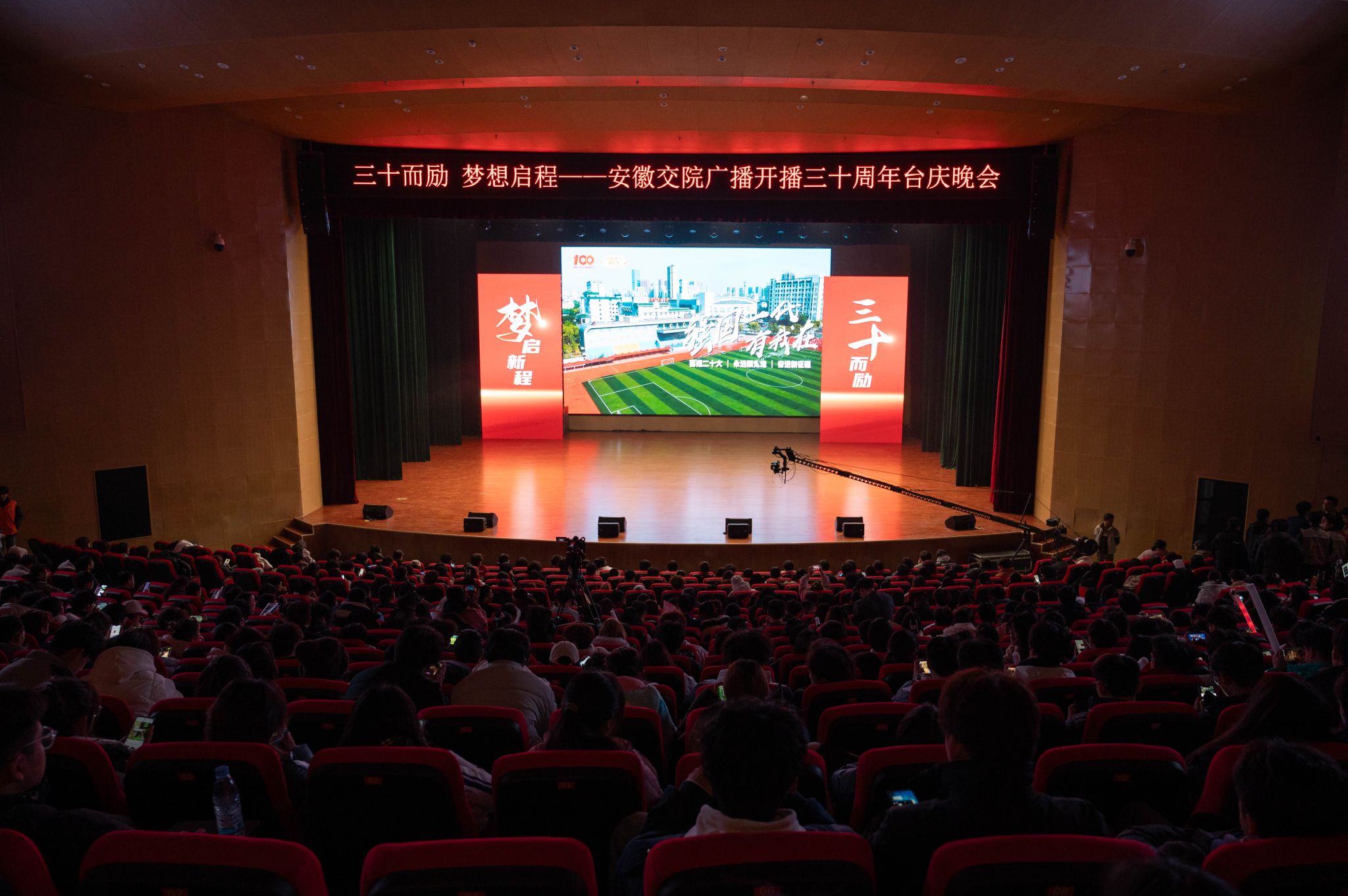 12月28日晚,安徽交院廣播開(kāi)播三十周年臺(tái)慶晚會(huì)《三十而勵(lì),夢(mèng)啟新程》暨新橋媒體中心啟用儀式在學(xué)院禮堂舉行。《光明日?qǐng)?bào)》安徽記者站站長(zhǎng)常河,中國(guó)交通廣播總監(jiān)許菲,安徽廣播電視臺(tái)生活頻道運(yùn)營(yíng)中心負(fù)責(zé)人、資深節(jié)目主持人韋麗,安徽省演講學(xué)會(huì)副會(huì)長(zhǎng)劉新躍,安徽廣播電視臺(tái)新聞主播、主任播音員袁媛,知名電視節(jié)目主持人宋秋熠,院黨委書(shū)記楊菲鈴,院黨委委員、紀(jì)委書(shū)記季傳友,院黨委委員、副院長(zhǎng)梁洪波以及部分高校媒體代表、各系部負(fù)責(zé)人、歷屆廣播臺(tái)臺(tái)員與800余名同學(xué)歡聚一堂,共同觀看了當(dāng)晚的慶典。安徽交院廣播各新媒體平臺(tái)對(duì)晚會(huì)進(jìn)行了現(xiàn)場(chǎng)直播。