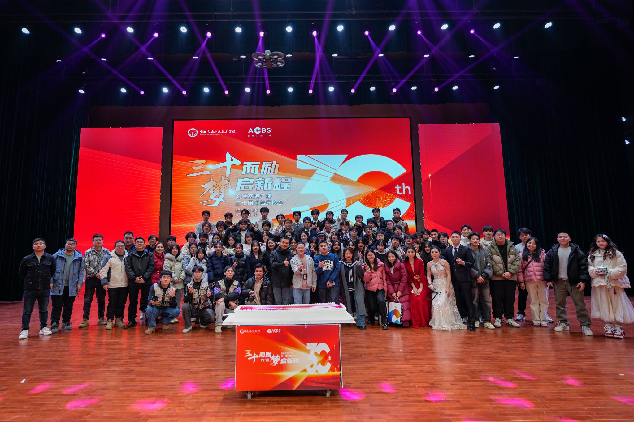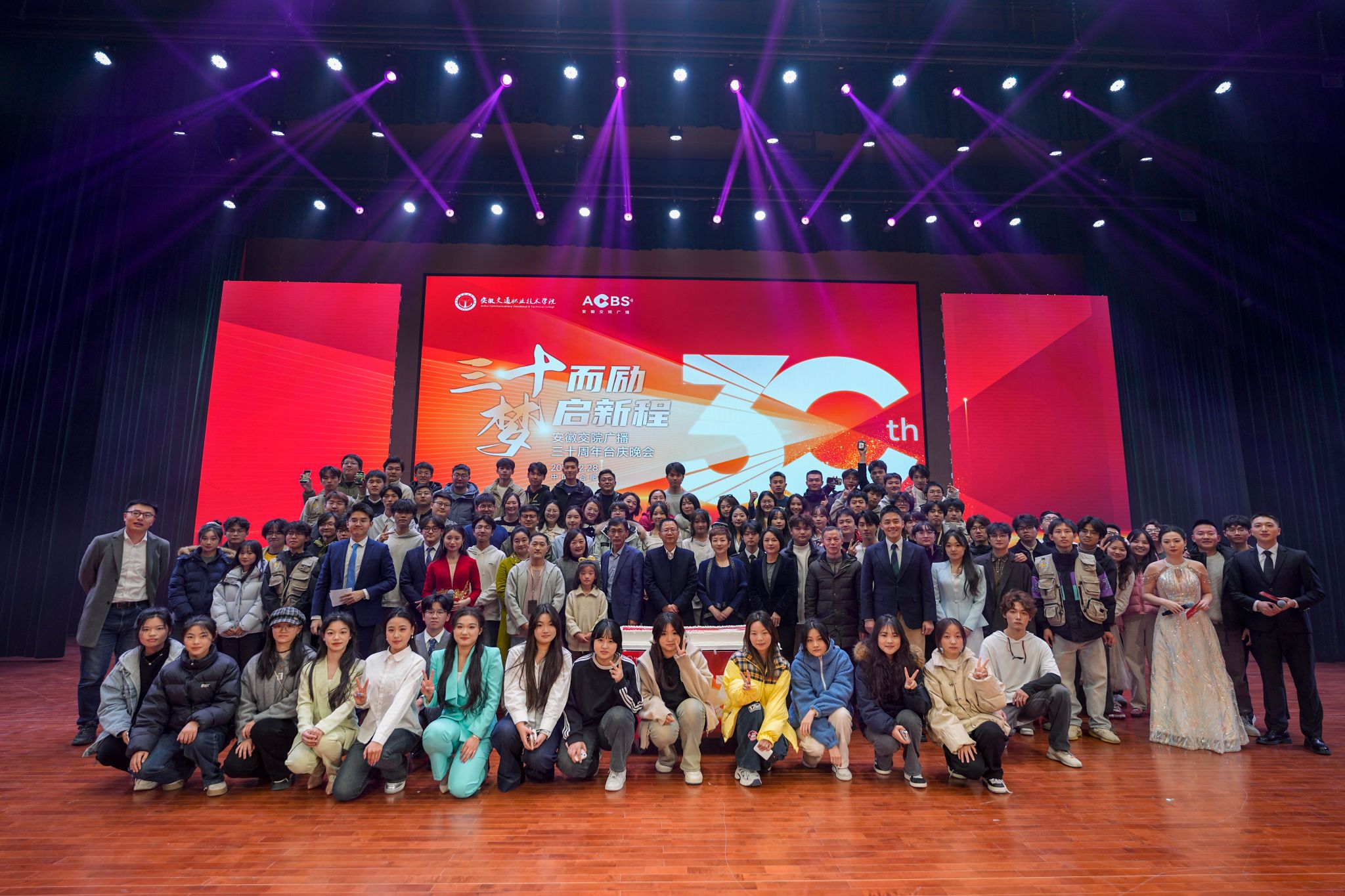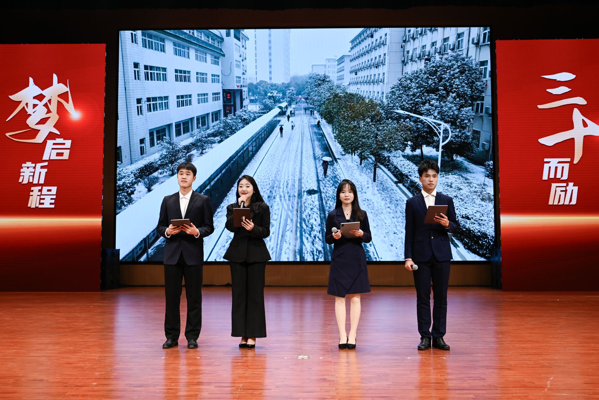 12月28日晚,安徽交院廣播開(kāi)播三十周年臺(tái)慶晚會(huì)《三十而勵(lì),夢(mèng)啟新程》暨新橋媒體中心啟用儀式在學(xué)院禮堂舉行。《光明日?qǐng)?bào)》安徽記者站站長(zhǎng)常河,中國(guó)交通廣播總監(jiān)許菲,安徽廣播電視臺(tái)生活頻道運(yùn)營(yíng)中心負(fù)責(zé)人、資深節(jié)目主持人韋麗,安徽省演講學(xué)會(huì)副會(huì)長(zhǎng)劉新躍,安徽廣播電視臺(tái)新聞主播、主任播音員袁媛,知名電視節(jié)目主持人宋秋熠,院黨委書(shū)記楊菲鈴,院黨委委員、紀(jì)委書(shū)記季傳友,院黨委委員、副院長(zhǎng)梁洪波以及部分高校媒體代表、各系部負(fù)責(zé)人、歷屆廣播臺(tái)臺(tái)員與800余名同學(xué)歡聚一堂,共同觀看了當(dāng)晚的慶典。安徽交院廣播各新媒體平臺(tái)對(duì)晚會(huì)進(jìn)行了現(xiàn)場(chǎng)直播。