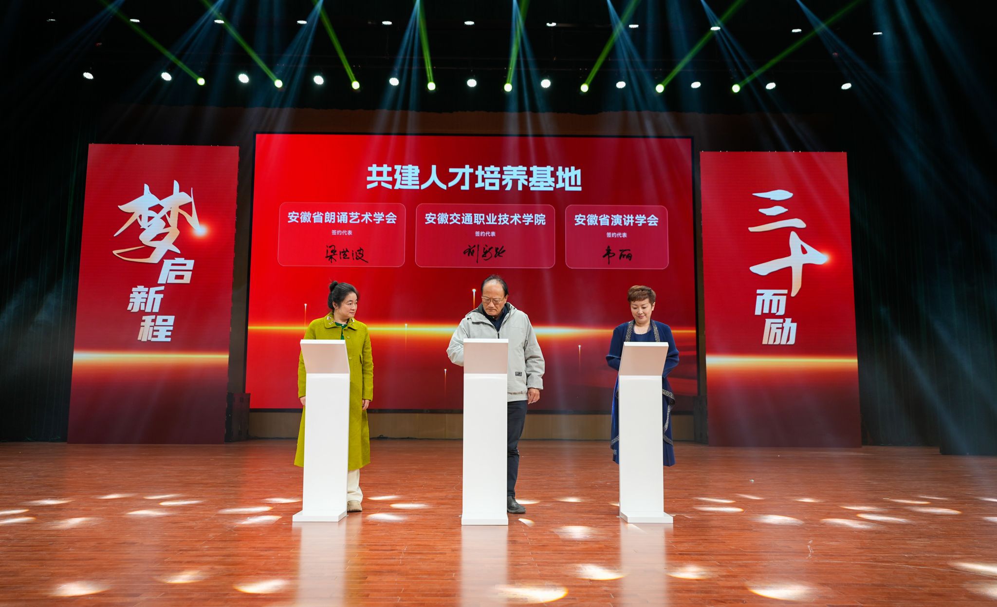 慶典儀式現(xiàn)場(chǎng)梁洪波代表學(xué)院與安徽省朗誦藝術(shù)學(xué)會(huì)、安徽省演講學(xué)會(huì)簽署共建人才培養(yǎng)基地協(xié)議,這一基地的成立,標(biāo)志著產(chǎn)教融合、校媒合作邁出了堅(jiān)實(shí)的一步。